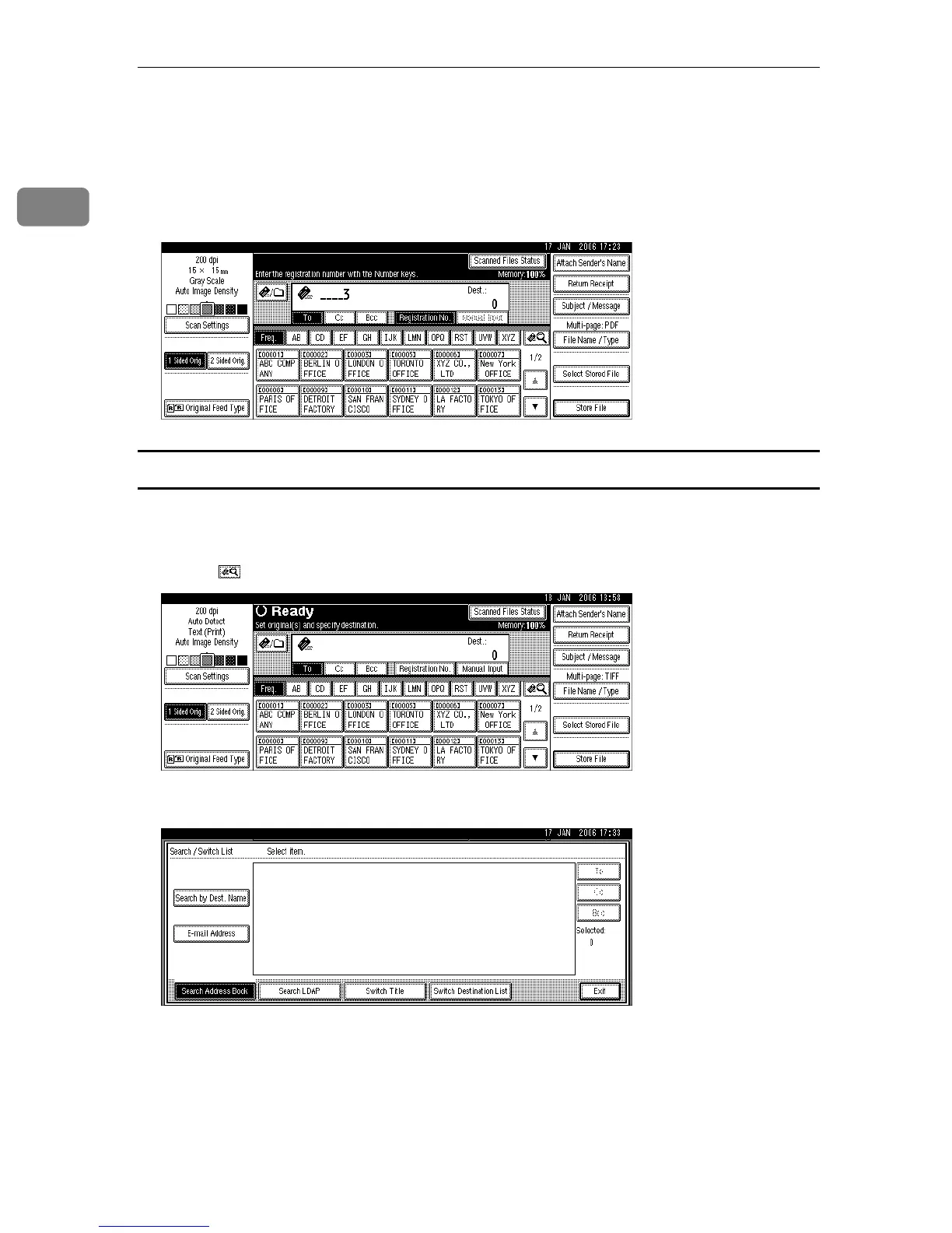 This section explains how to search the machine’s address book for the destina-