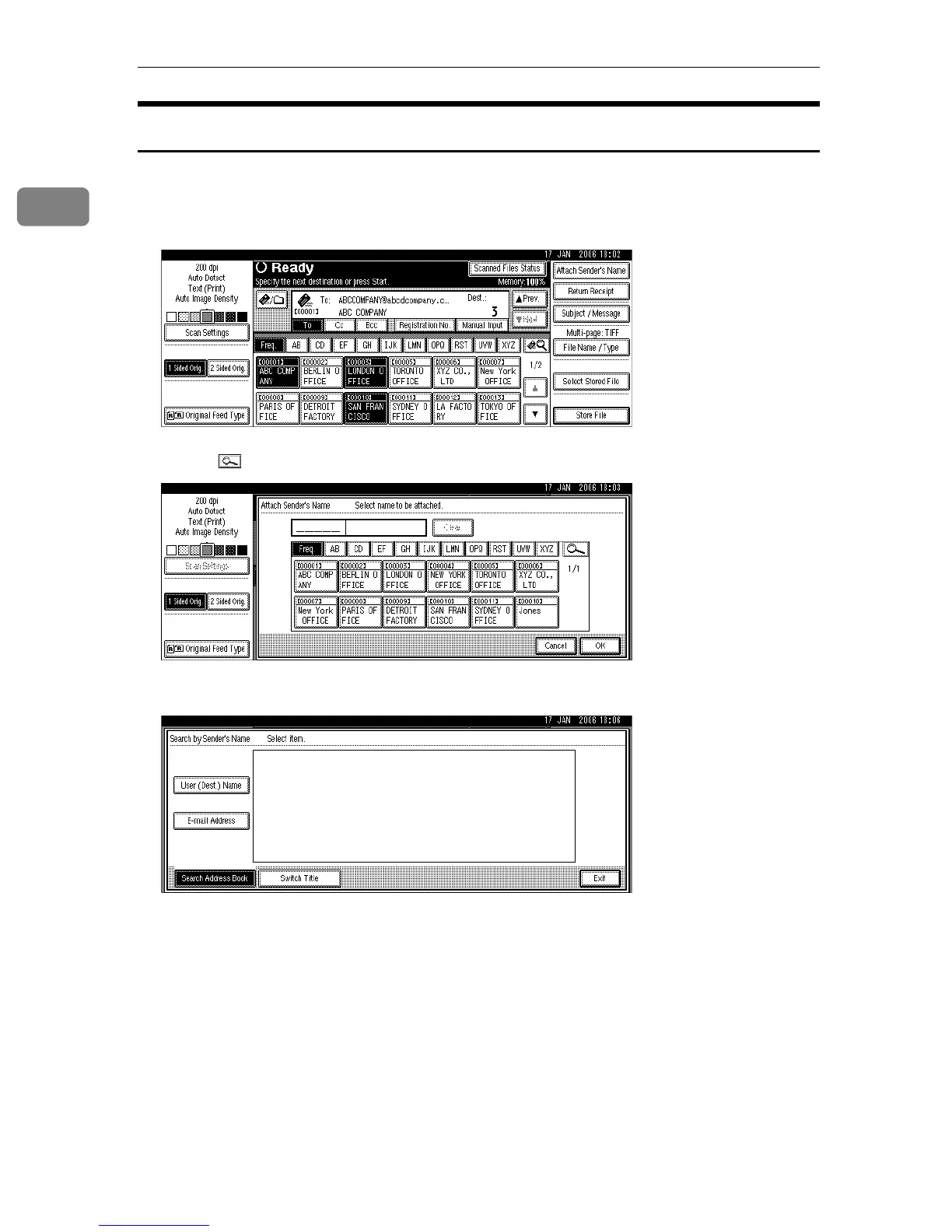 Selecting the Sender by Searching the Machine’s Address Book