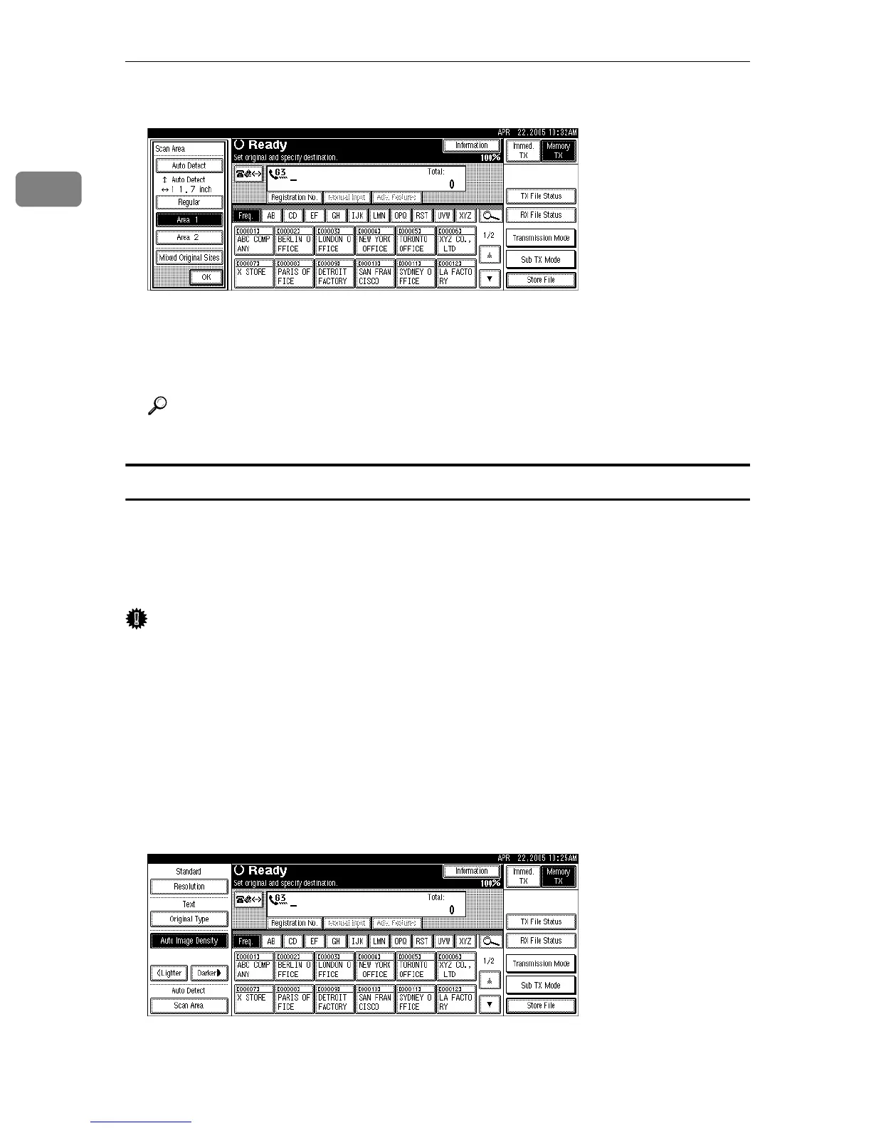 Area 1” or “Area 2” is shown above the highlighted [Scan Area].