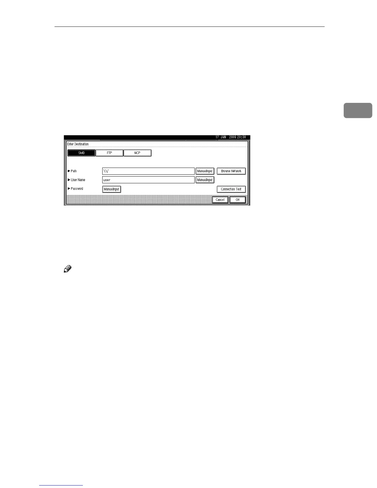F Depending on the destination setting, enter the user name for logging on