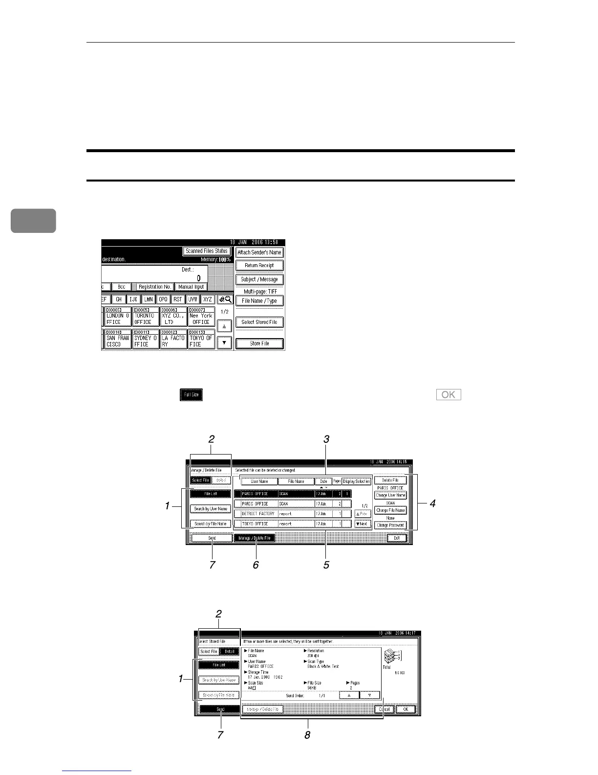 To display the list of stored files, press [Select Stored File] on the initial scanner