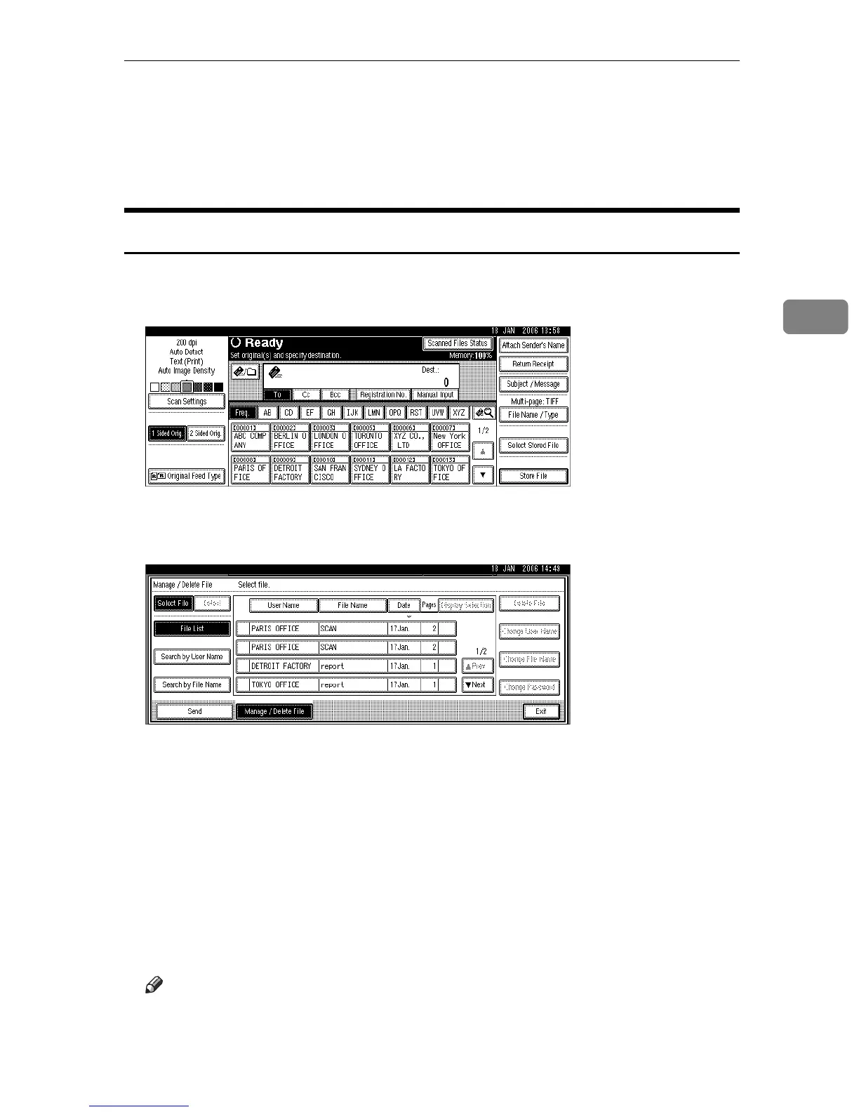 This section explains how to delete stored files and how to change the informa-