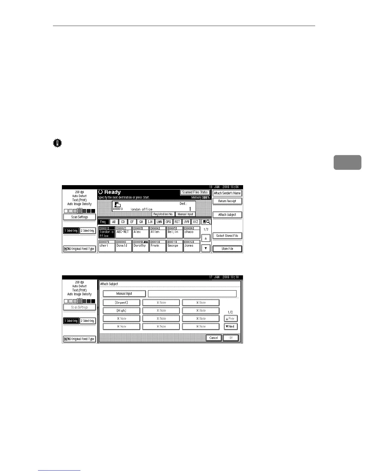 This section explains how to specify the e-mail subject when sending a file by e-