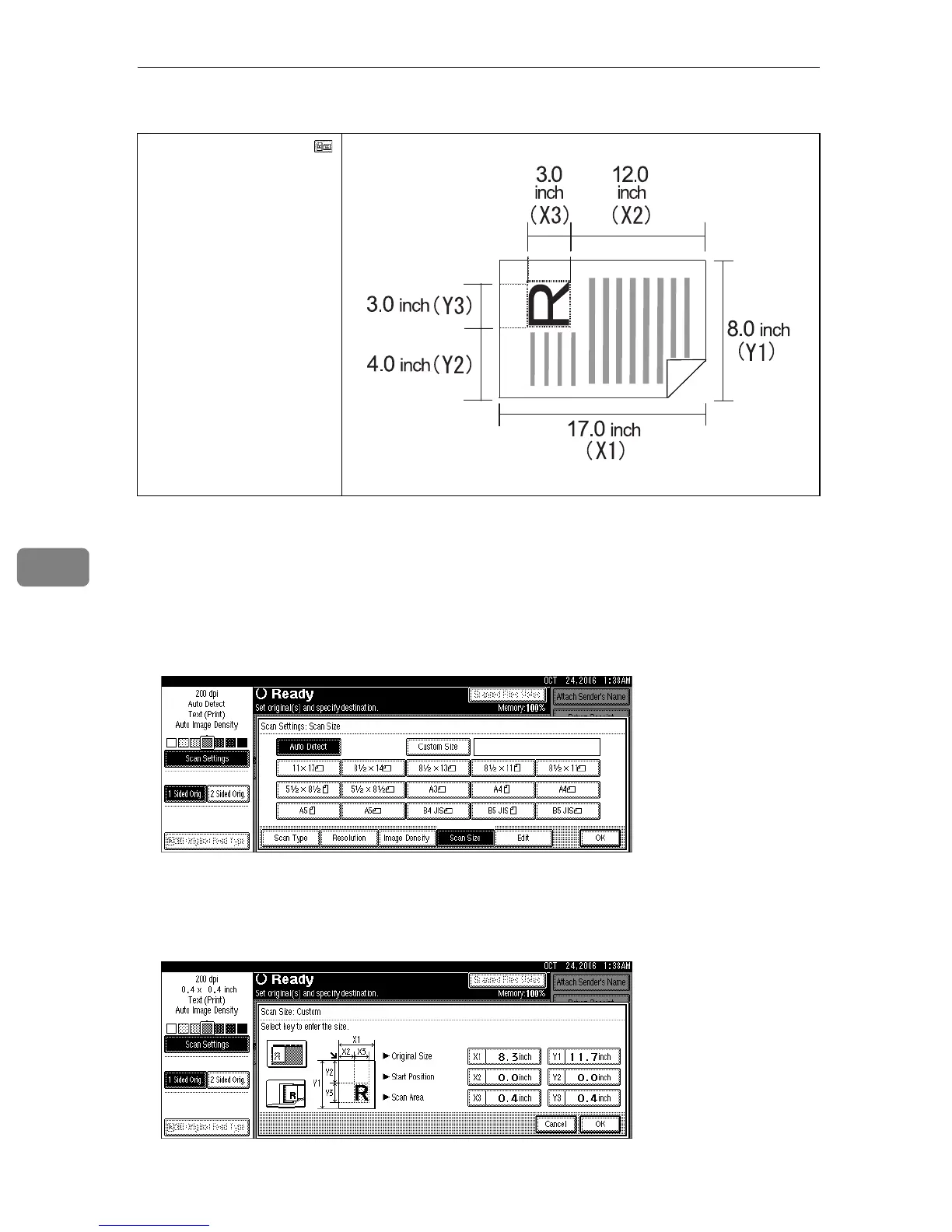 Examples 1 and 2 (above) explain the procedure for scanning the "R" area of the