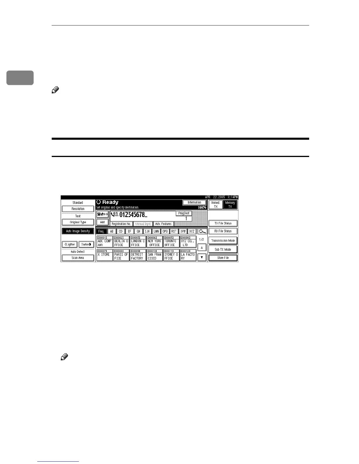 Fax numbers, IP-Fax destinations, and e-mail addresses can be specified.