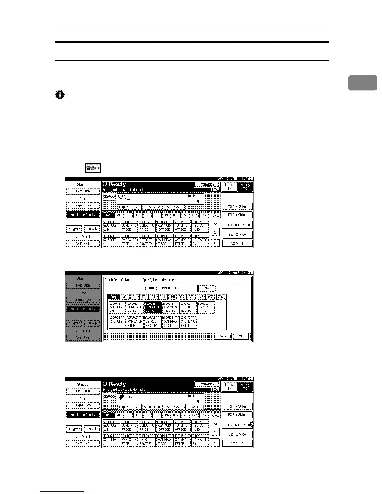 in advance using “Address Book Management” in “System Settings”.
