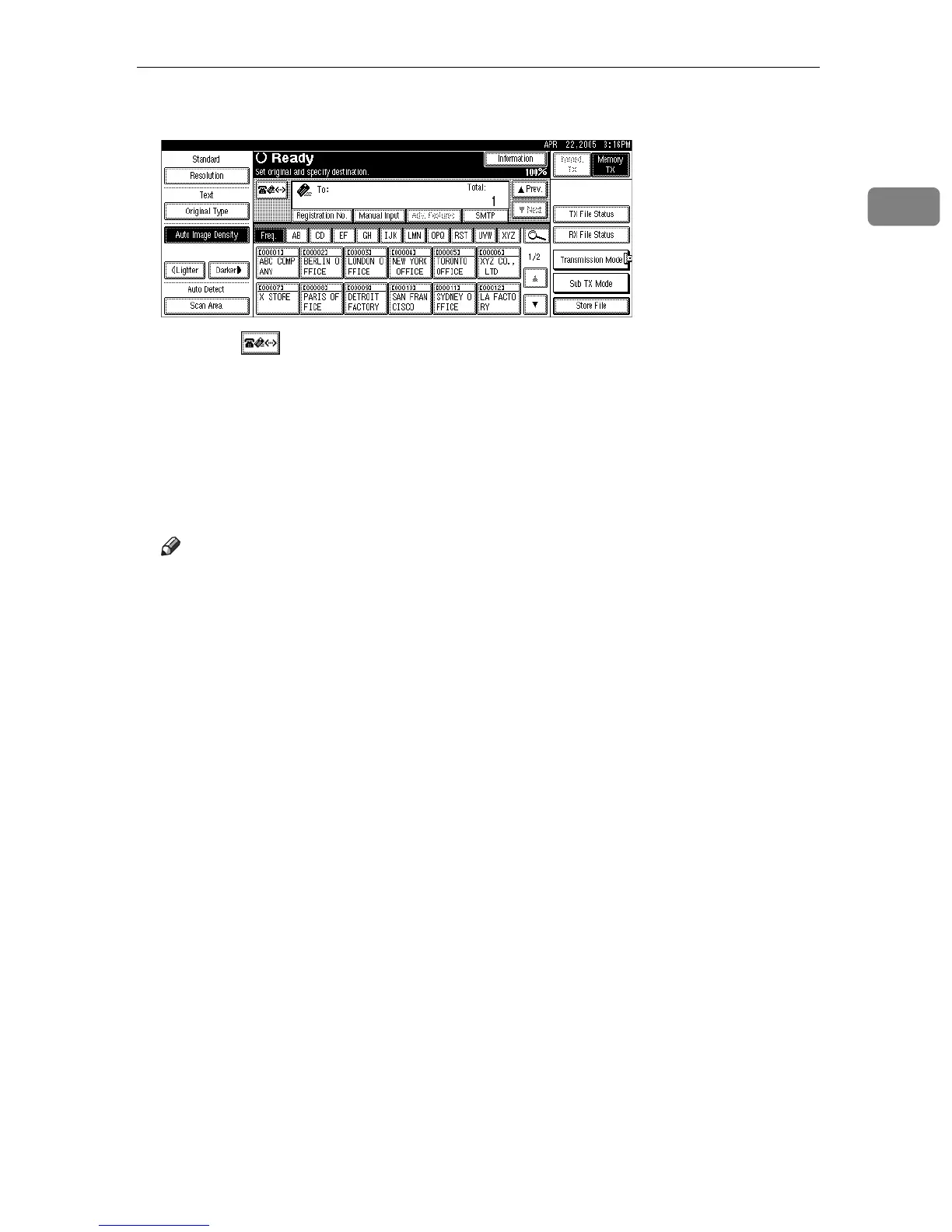 Pressing switches the destination list between fax number, e-mail ad-