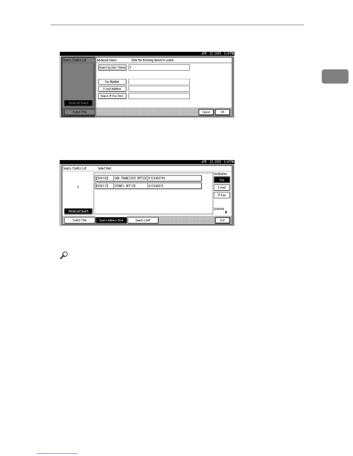 If the desired destination does not appear, use [U] or [T] to scroll through the