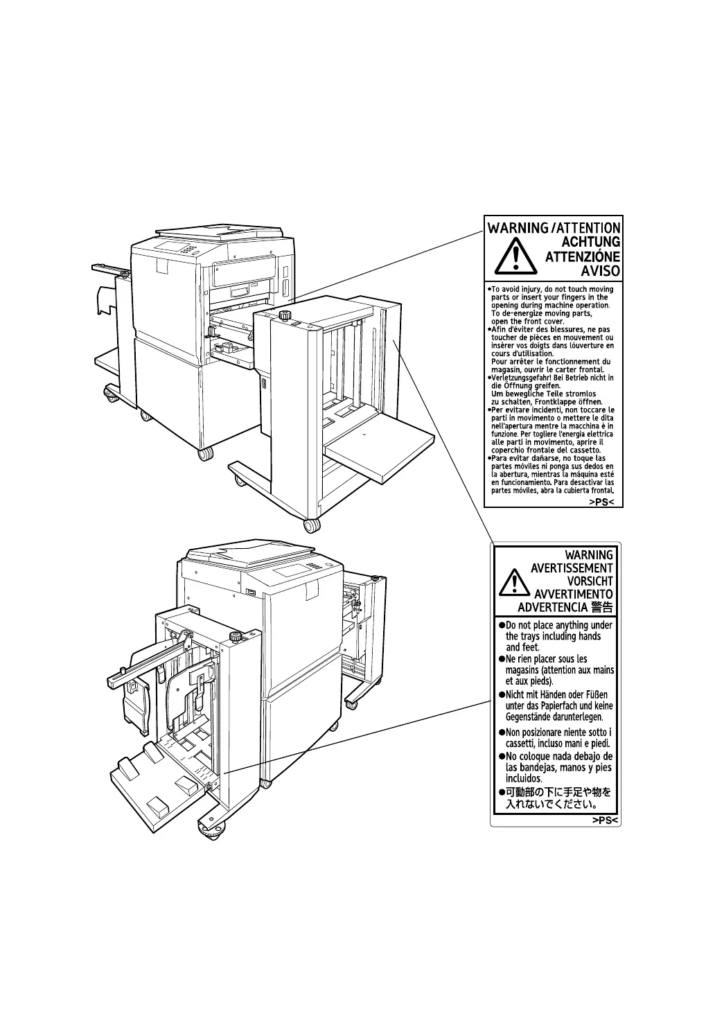 This machine has labels for RWARNING and RCAUTION at the positions