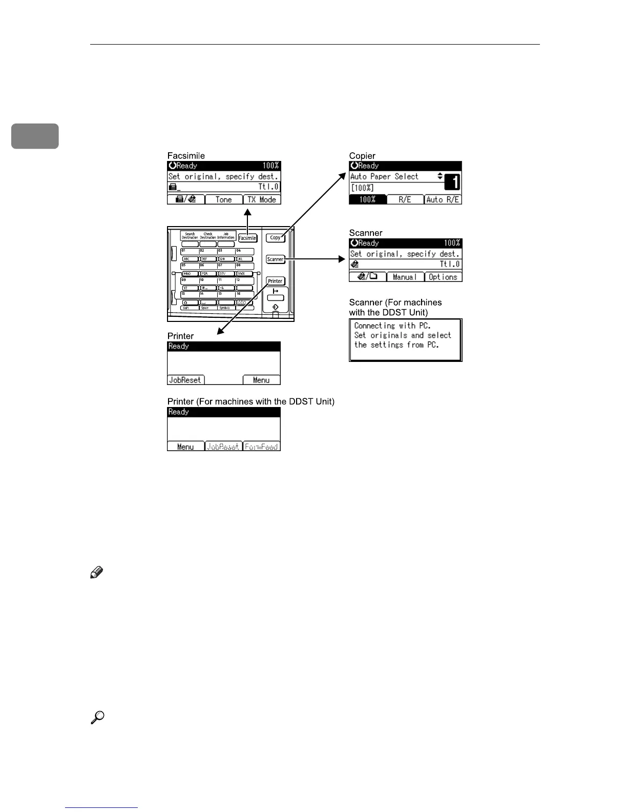 ❒ The copy display is set as the default screen when the machine is turned on.