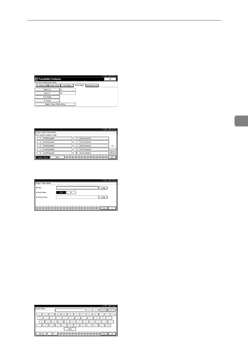 Register, change, or delete the gateway used for transmission to IP-Fax.