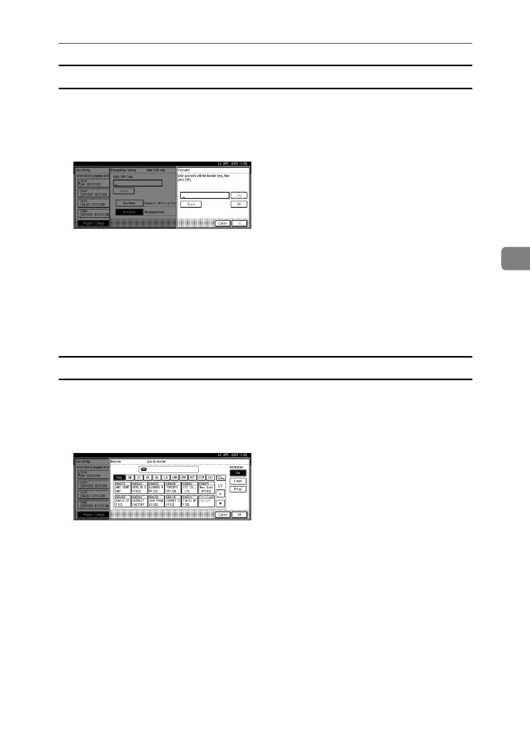 To change the password after pressing [OK], press [Change] and repeat steps
