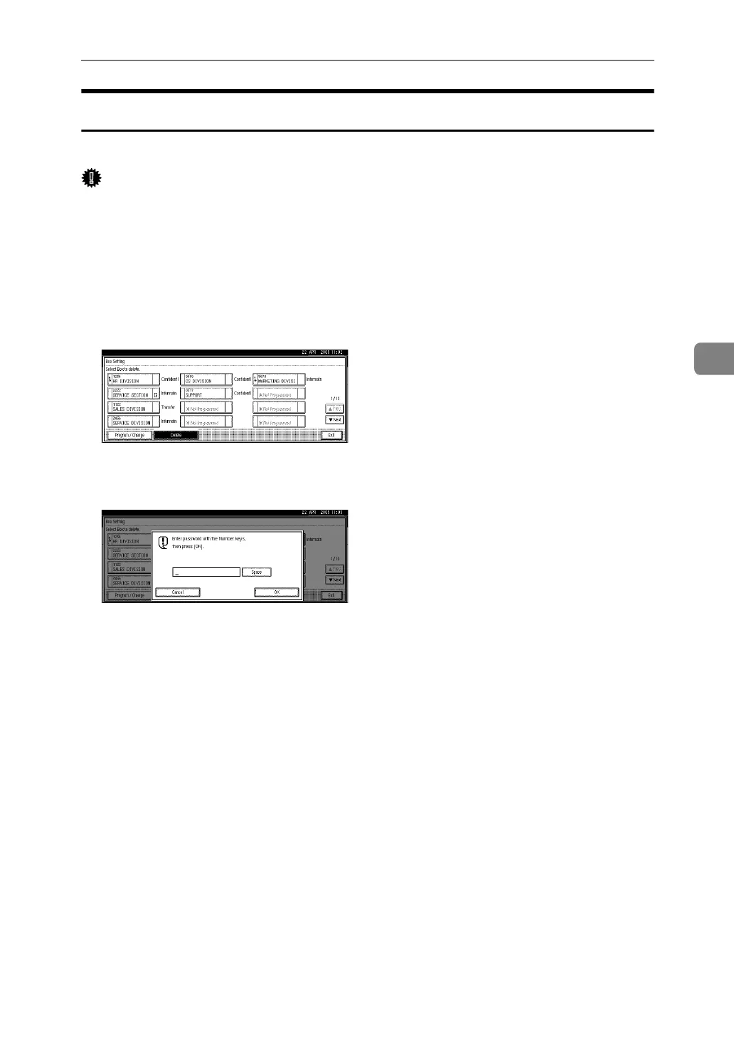 To cancel deleting a box, press [Do not Delete]. The display returns to that of