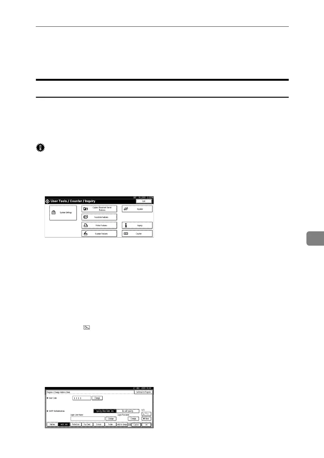 ❒ When [Do not Specify] is selected for SMTP Authentication, the User Name and