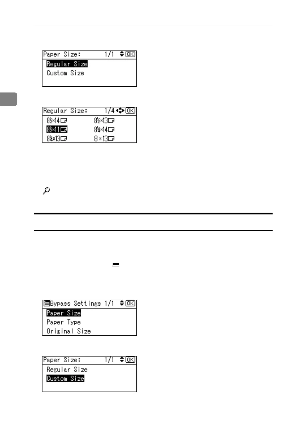 F Select the paper size using the scroll keys, and then press the {OK} key.