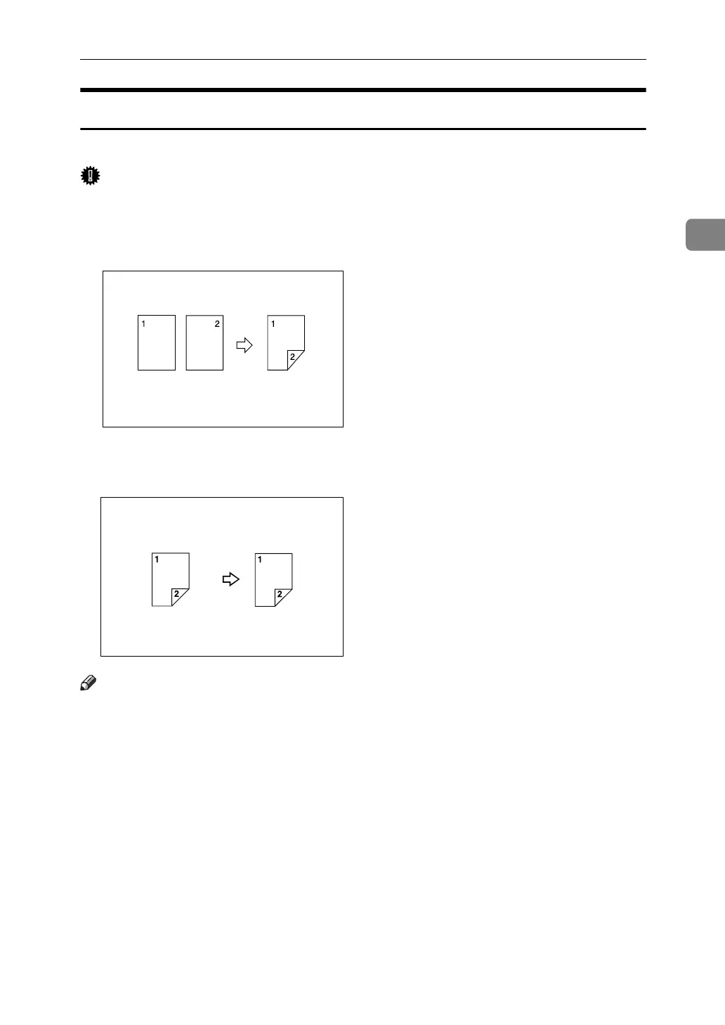 Copies 2 one-sided pages to 1 two-sided page.