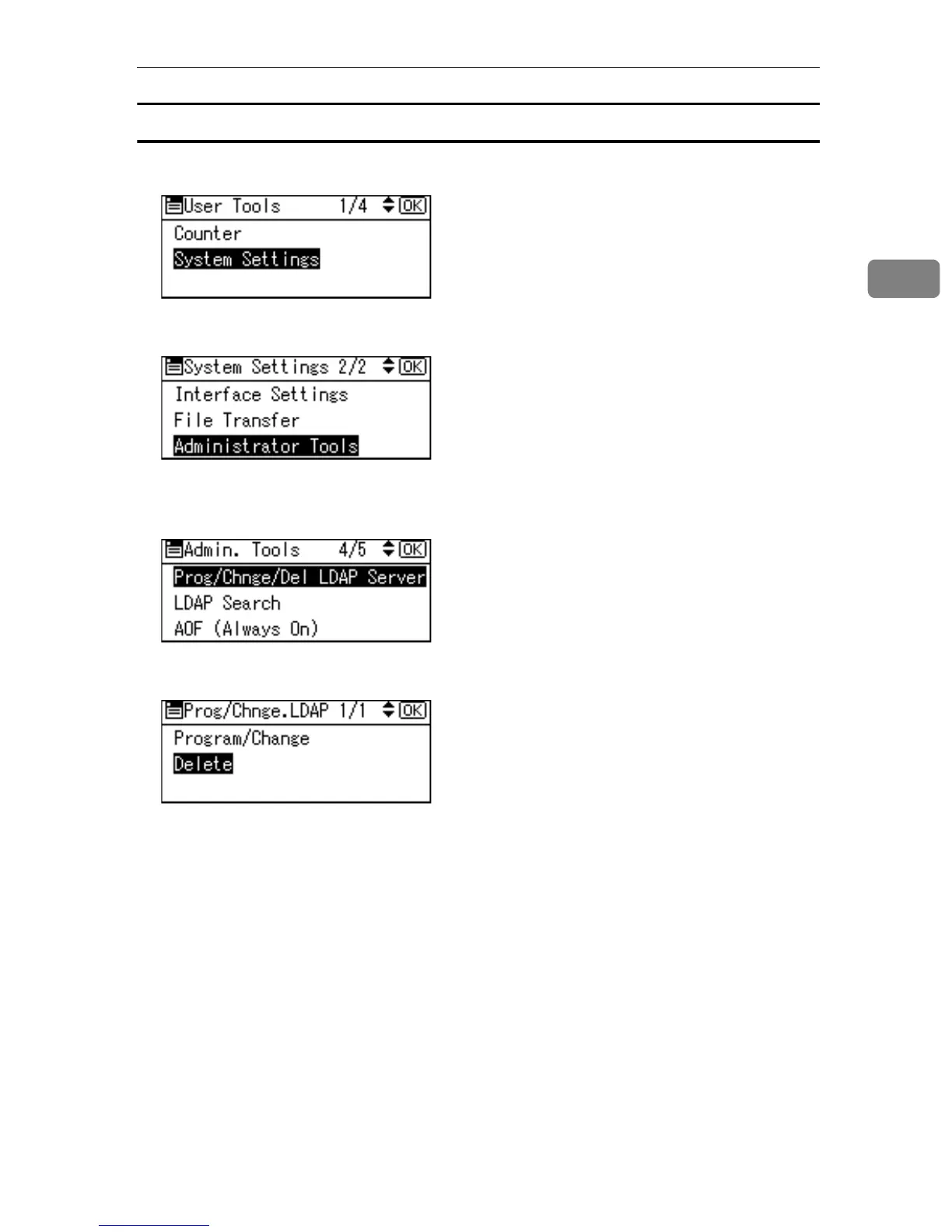 C Select [Prog/Chnge/Del LDAP Server] using {U} or {T}, and then press the {OK}