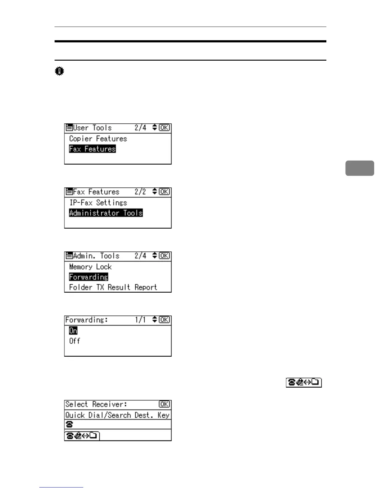 C Select [Forwarding] using {U} or {T}, and then press the {OK} key.