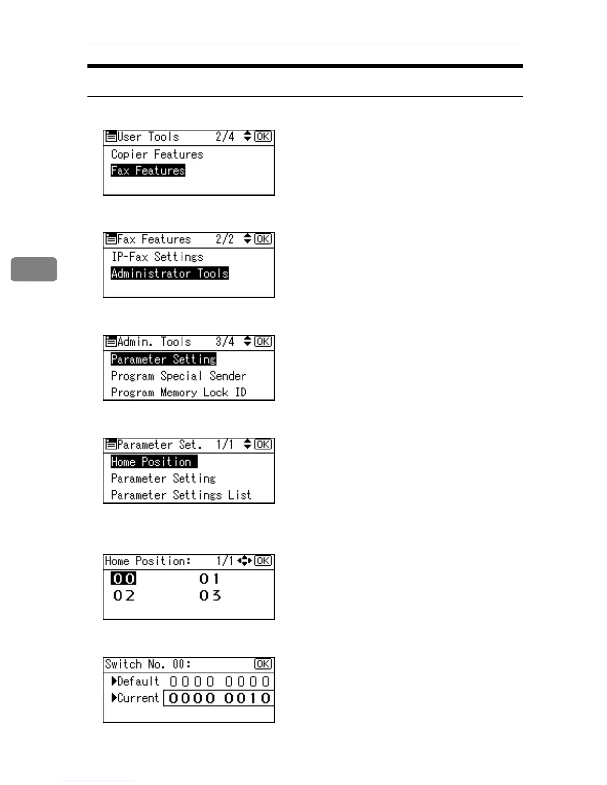 C Select [Parameter Setting] using {U} or {T}, and then press the {OK} key.