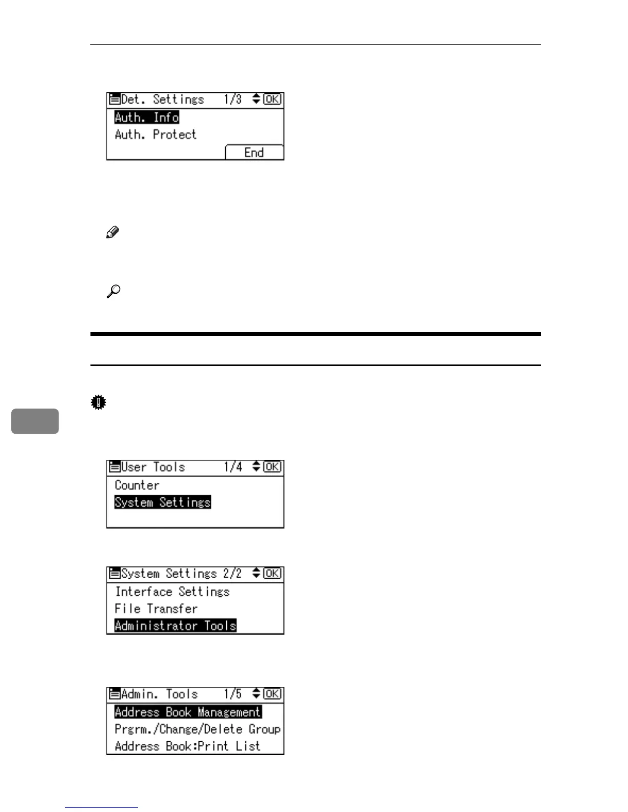 B Select [Administrator Tools] using {U} or {T}, and then press the {OK} key.