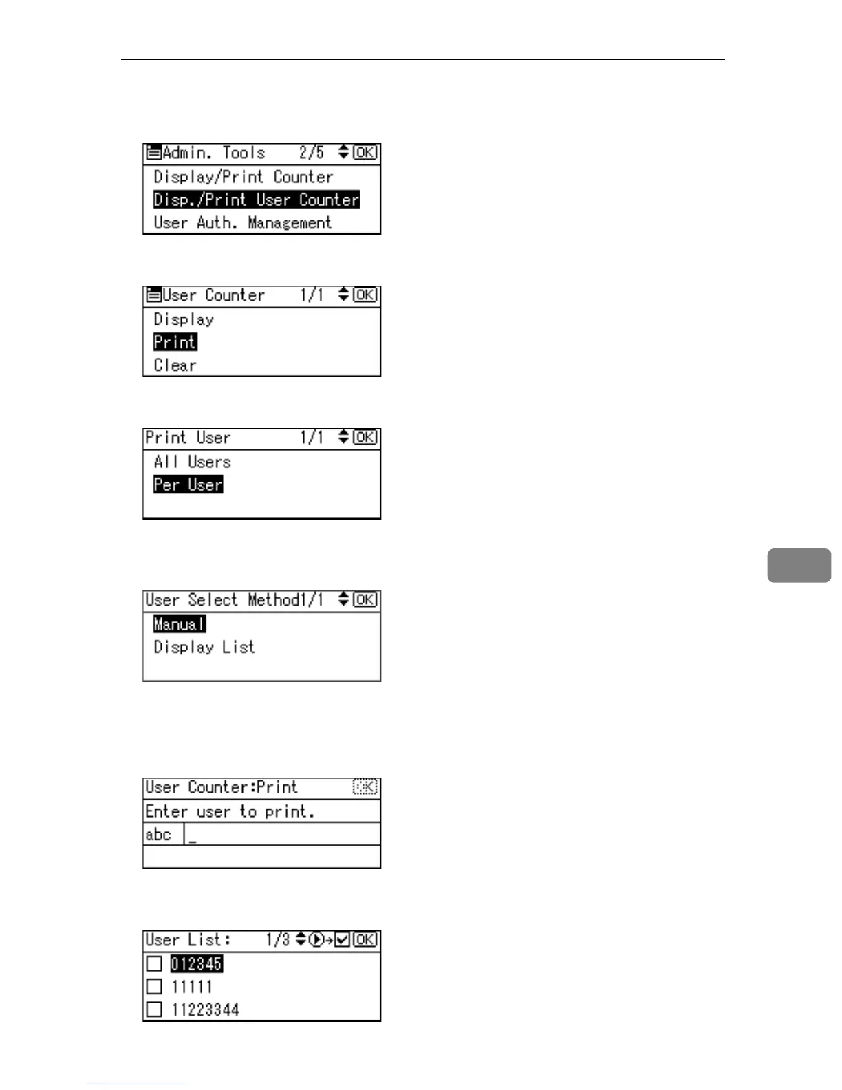 C Select [Disp./Print User Counter] using {U} or {T}, and then press the {OK}
