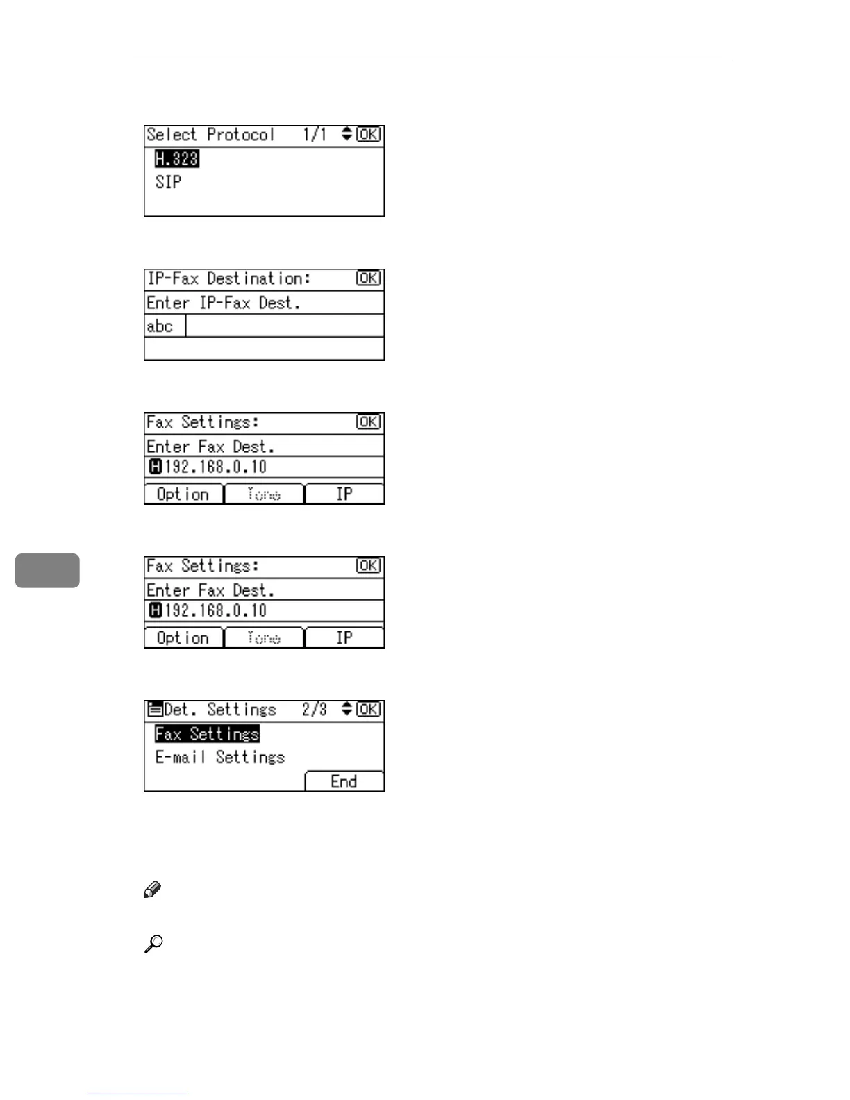 K Enter the IP-Fax destination and then press the {OK} key.