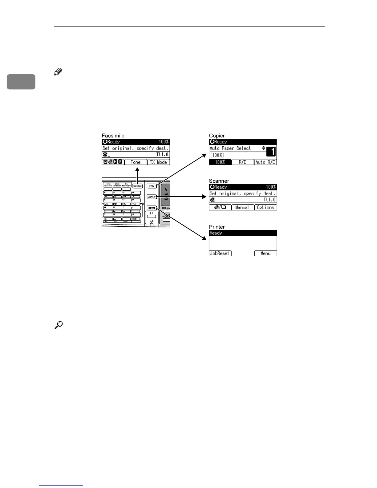 ❒ The copying screen is displayed as default after power on. You can change
