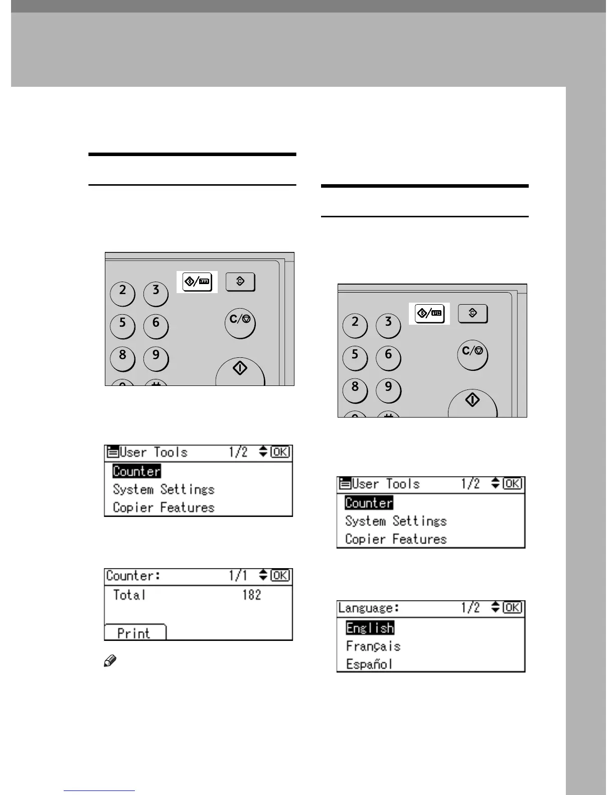 E Press the {User Tools/Counter} key.