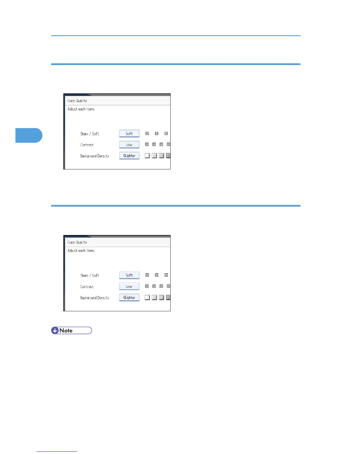 • Adjustments should be made lighter when copying dark textured originals, such as newspaper or