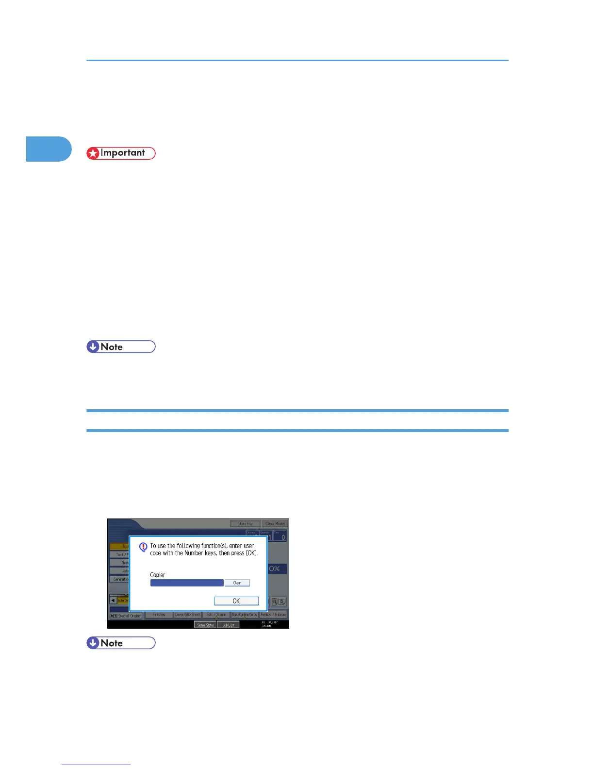 This section explains the procedure for logging in to the machine using the control panel while User Code