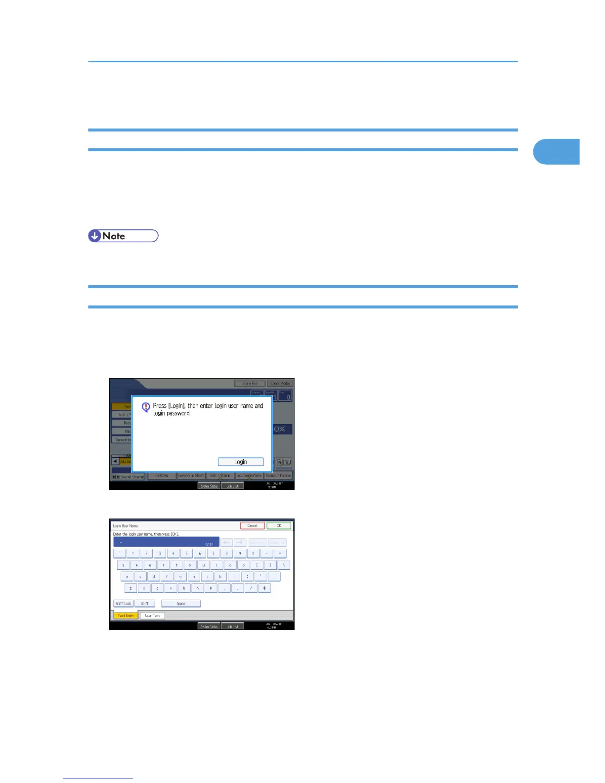 This section explains the procedure for logging in to the machine when Basic Authentication, Windows