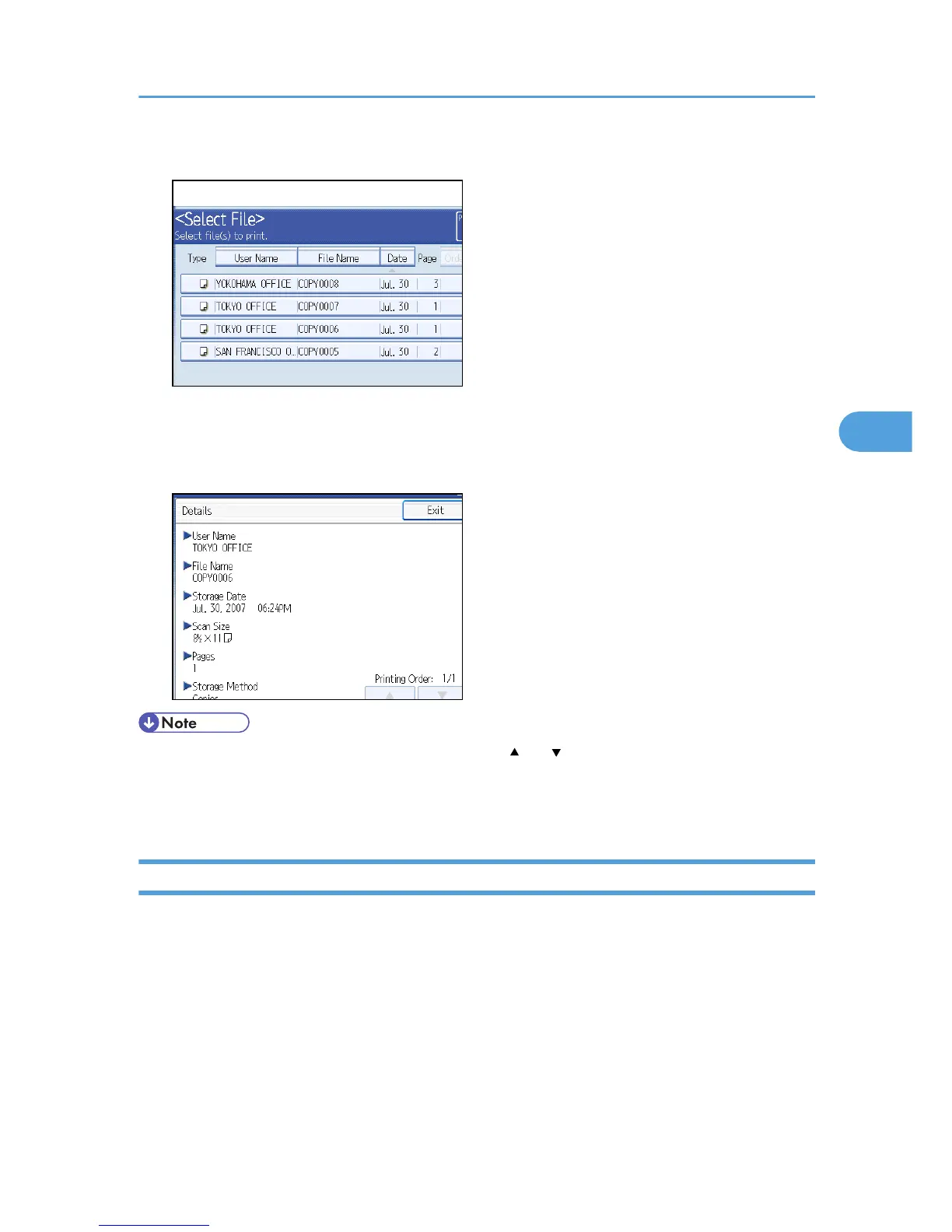 • If you have selected two or more documents, press [ ] or [ ] to view their information.