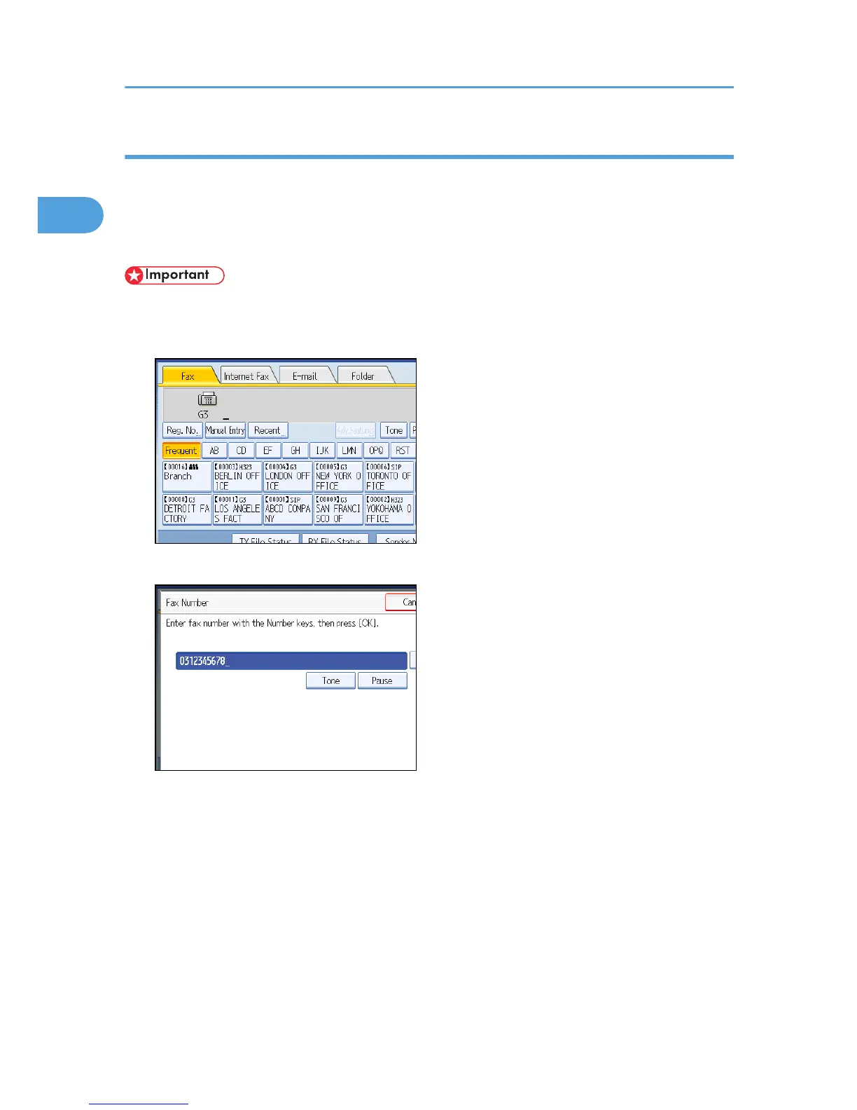 • When using this function, you must press [Manual Entry] on the standby display to enter the fax number.