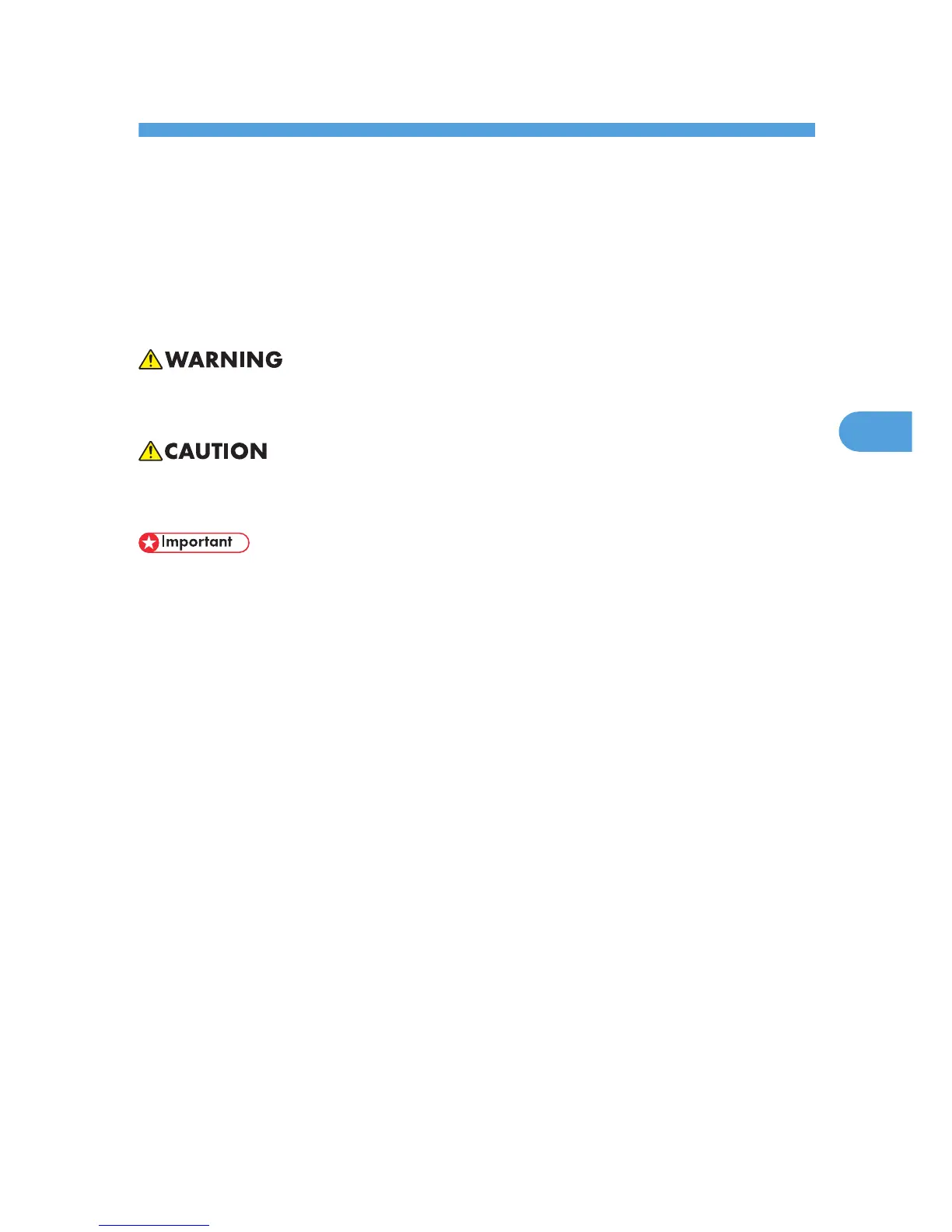• Keep the machine away from flammable liquids, gases, and aerosols. A fire or an electric shock might