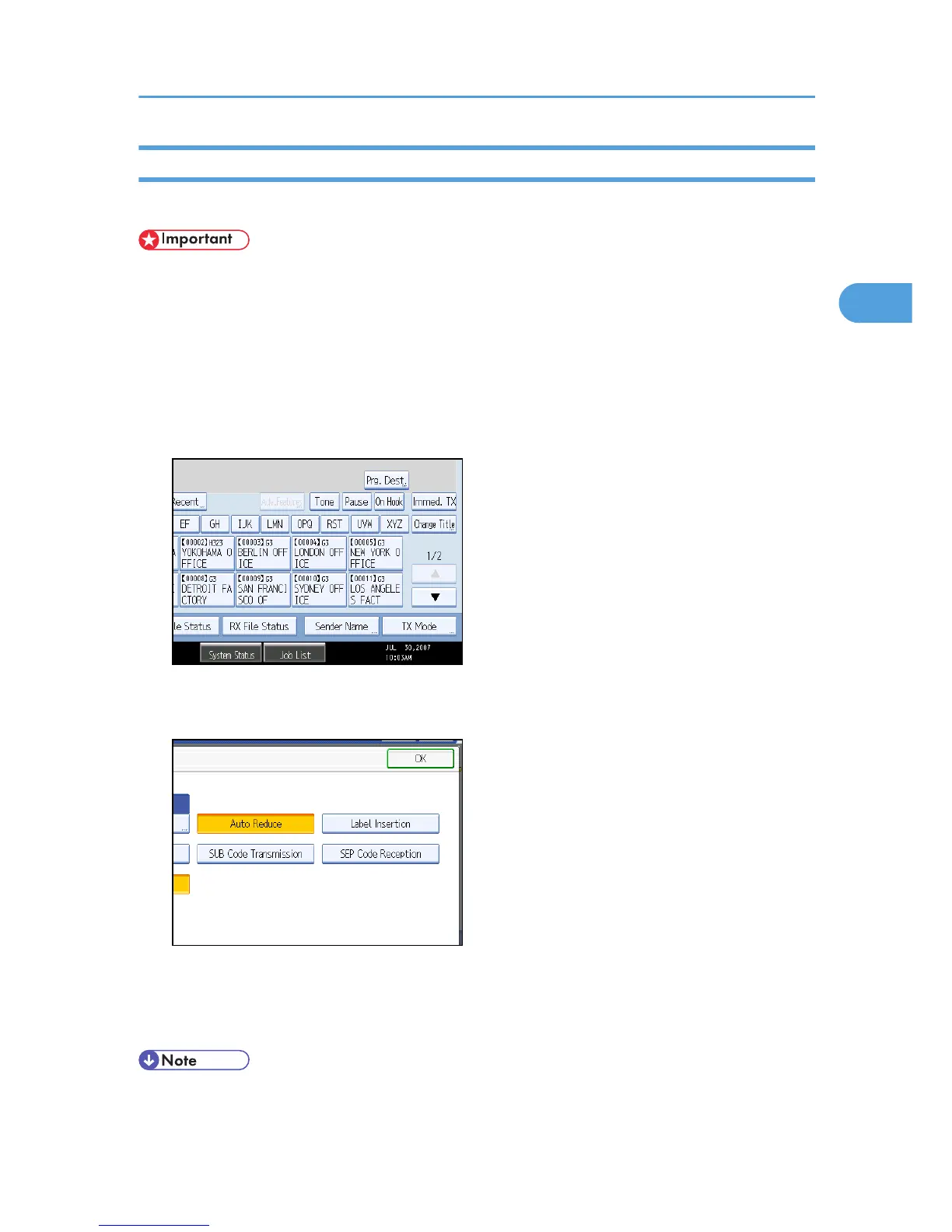 • To perform SEP Code Reception, a SEP Code must be set in [Adv.Features], the Address Book, or