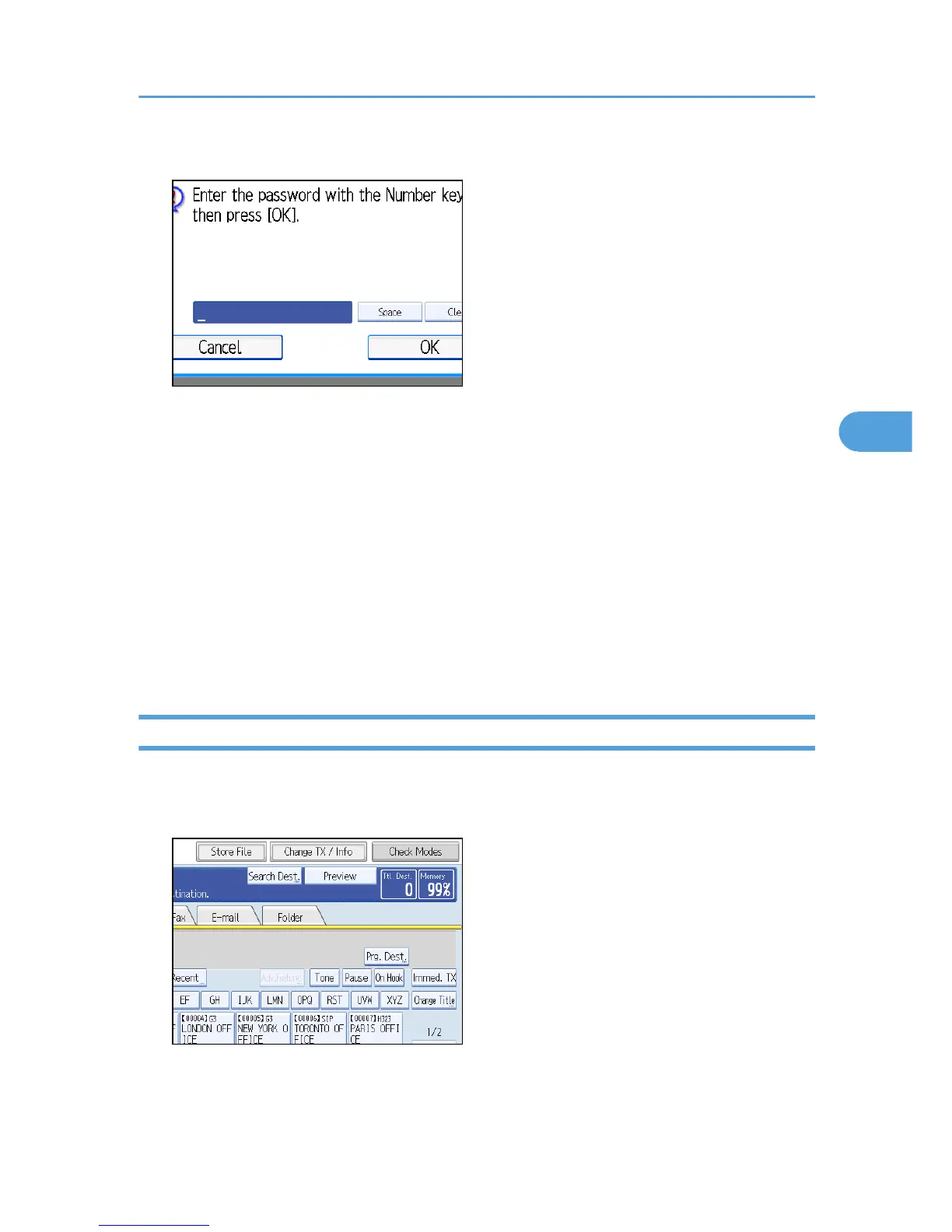 To cancel entering a password, press [Cancel]. The display returns to that of step 4.