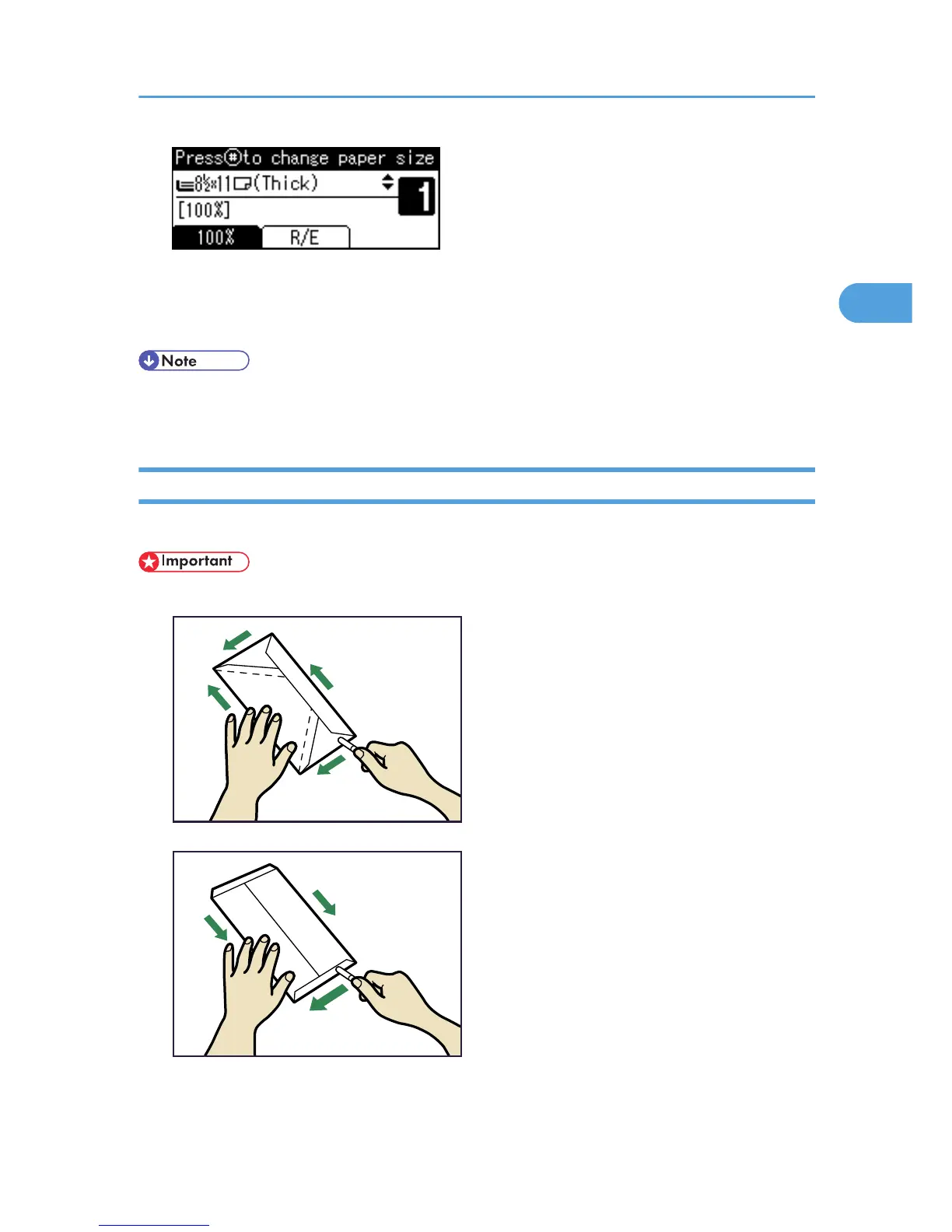 When copying onto envelopes, specify the paper type and paper size.