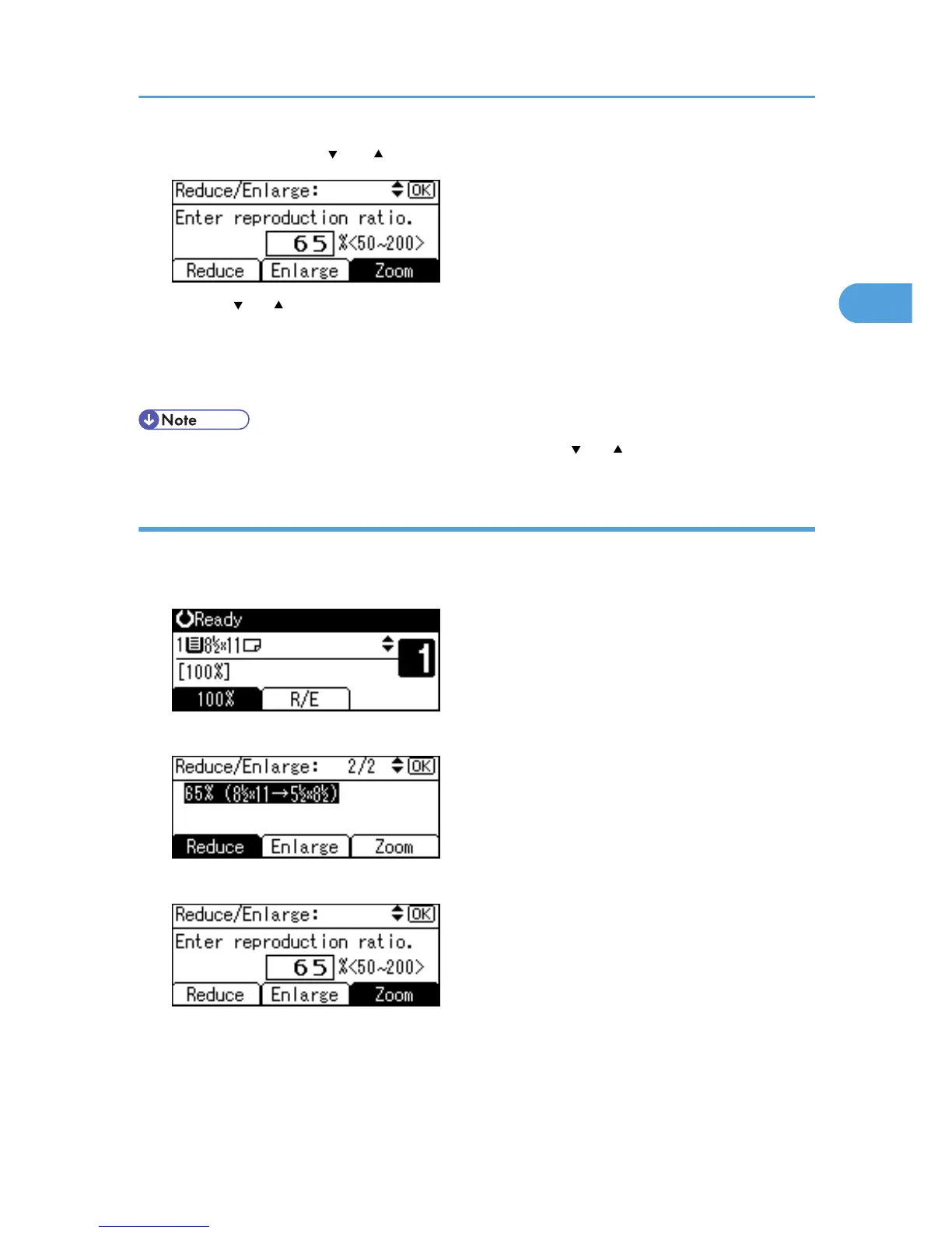 Pressing [ ] or [ ] changes the ratio in increments of 1%. Pressing and holding down the relevant key