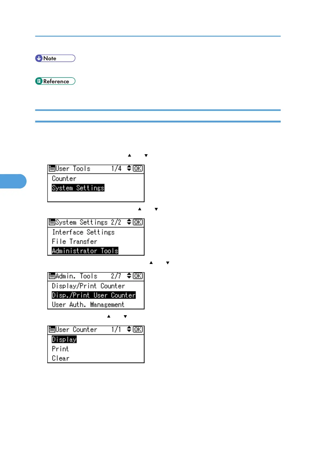 4. Press [Disp./Print User Counter] using [ ] or [ ], and then press the [OK] key.