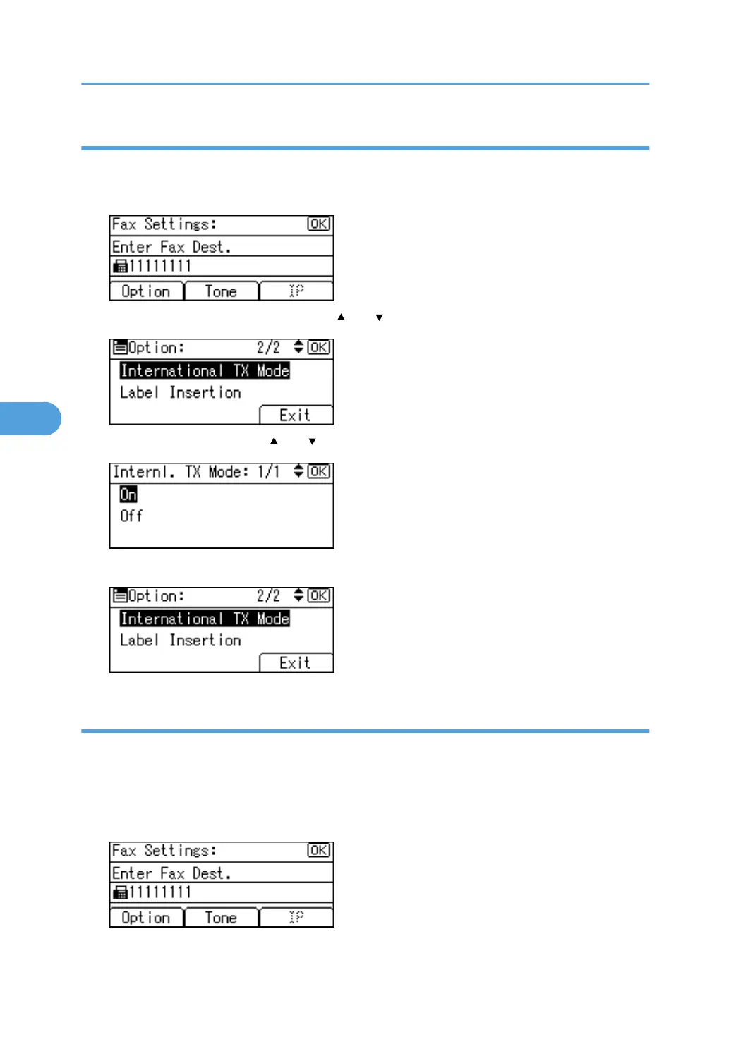 2. Select [International TX Mode] using [ ] or [ ], and then press the [OK] key.