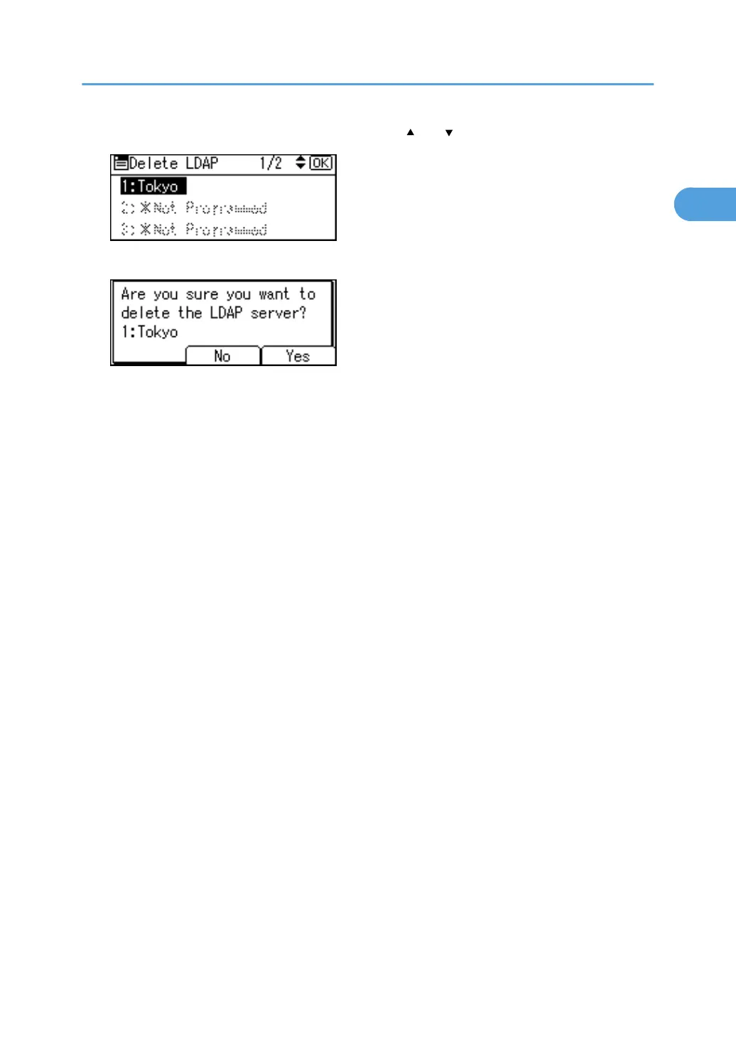 6. Select the LDAP server you want to delete using [ ] or [ ], and then press the [OK] key.