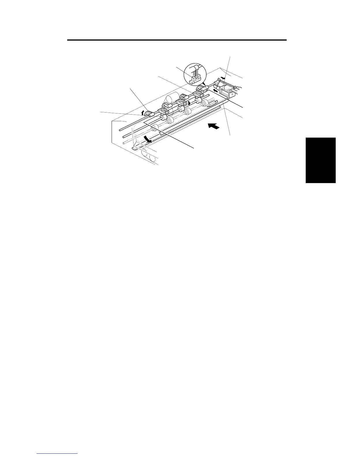 When the Print key is pressed, the stopper solenoid [C] activates to raise the