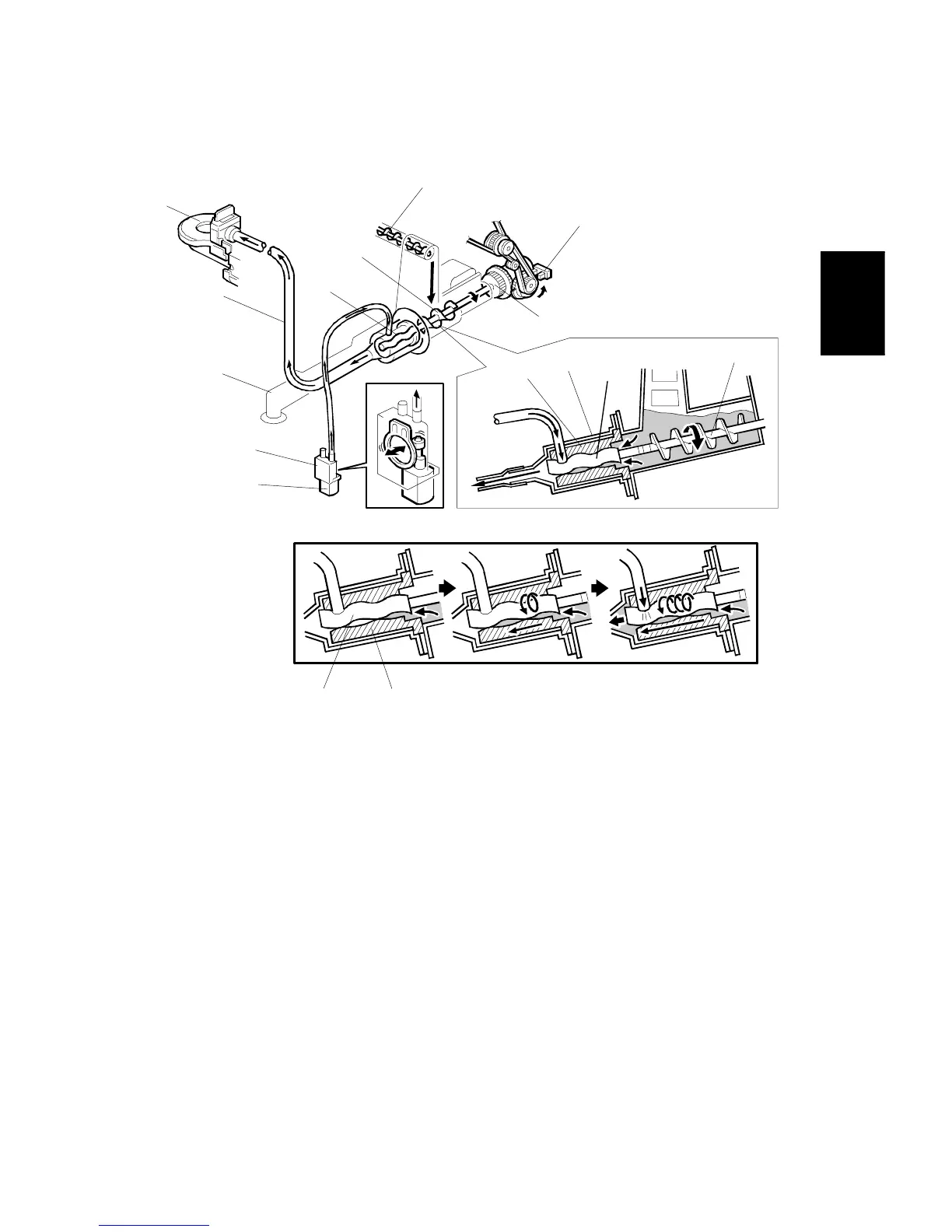 This machine has a toner recycling system, using a screw-pump unit. This