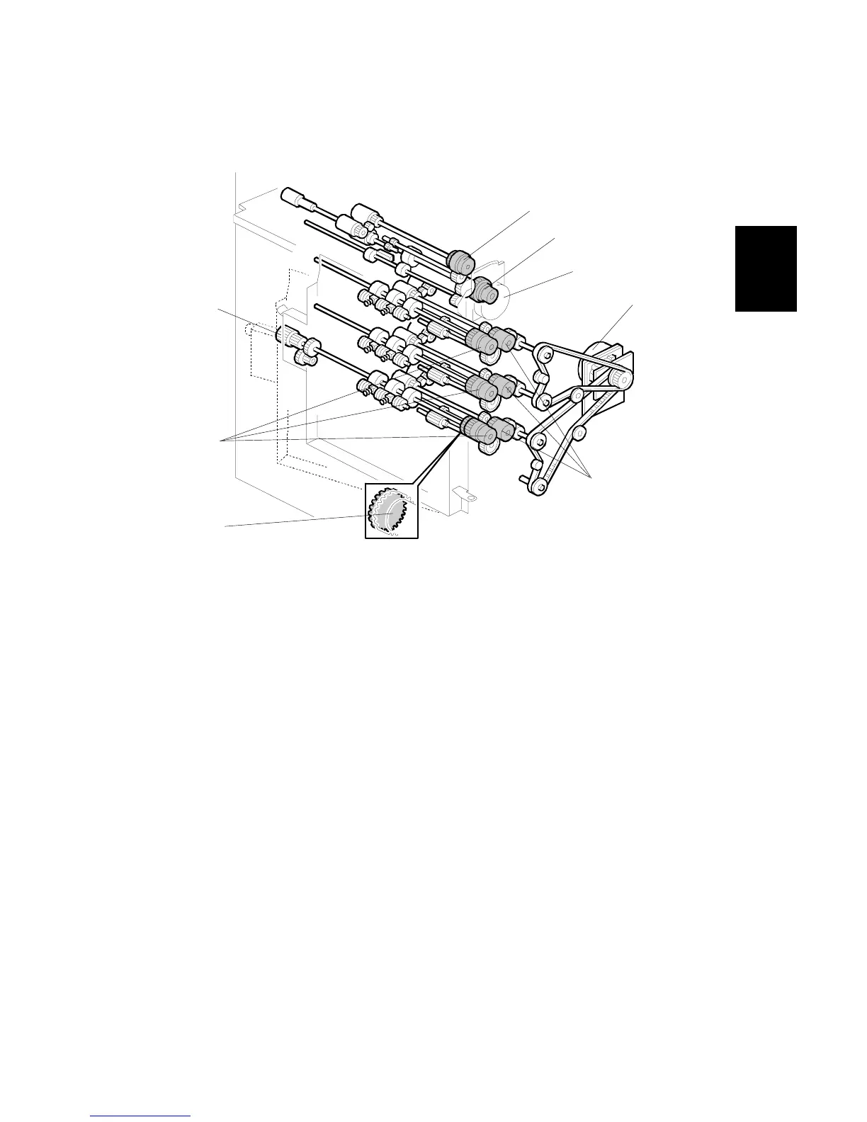 the vertical transport rollers. Drive is transferred to each of the three vertical