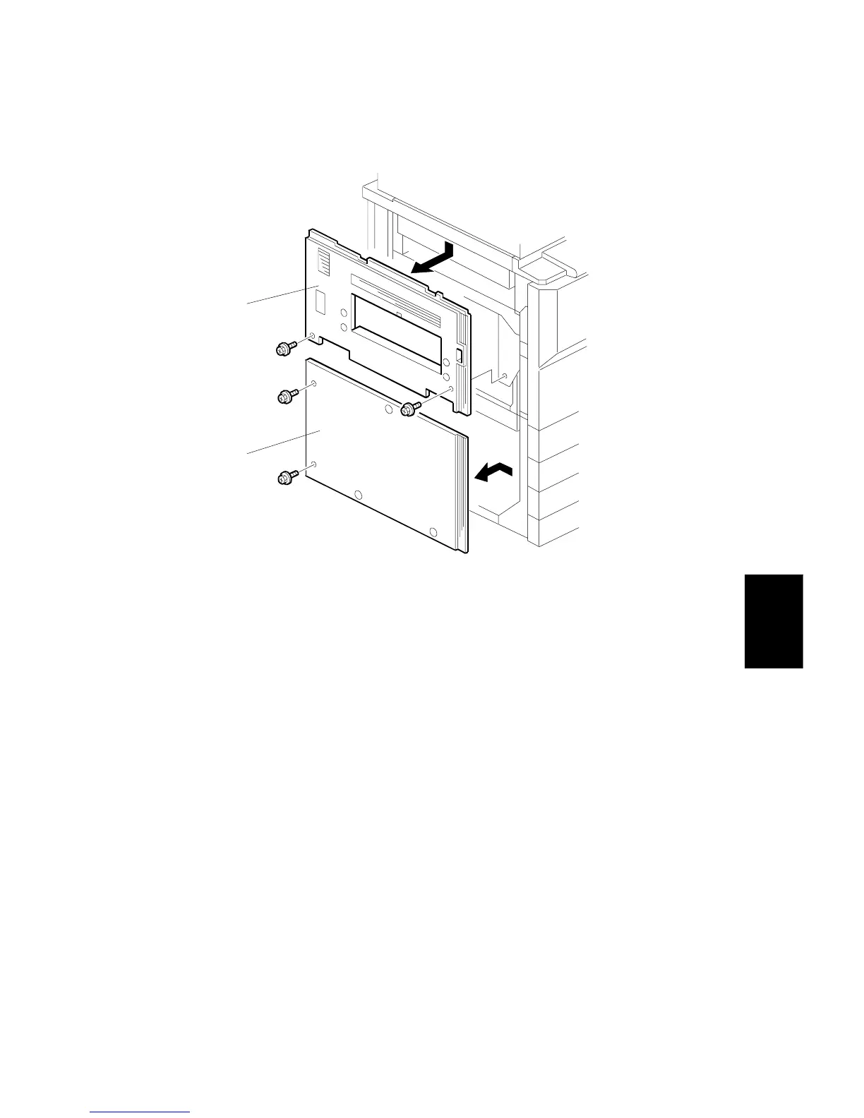 1. Remover the lower left cover [B] (2 screws).