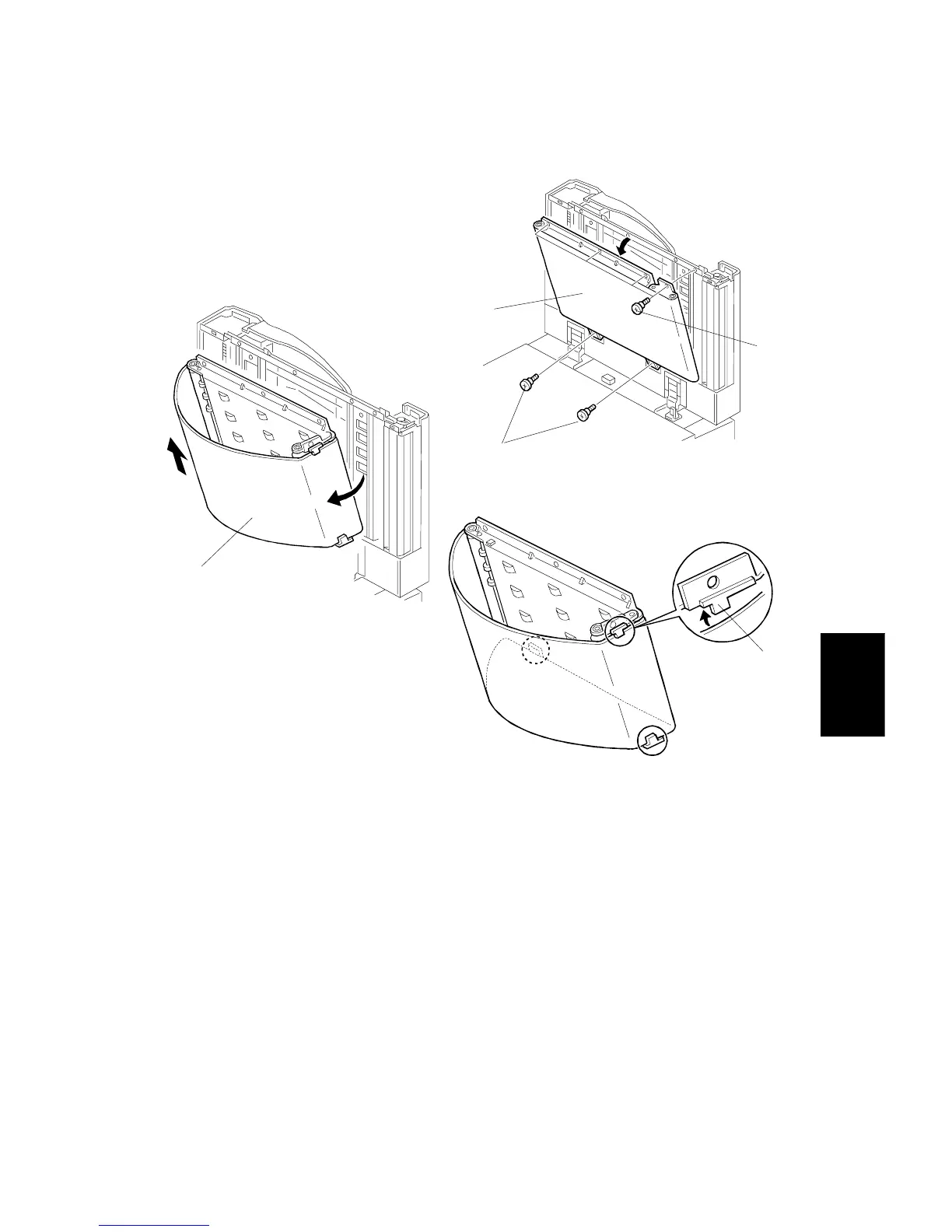 3. Remove the upper four screws [C] securing the transport belt assembly.