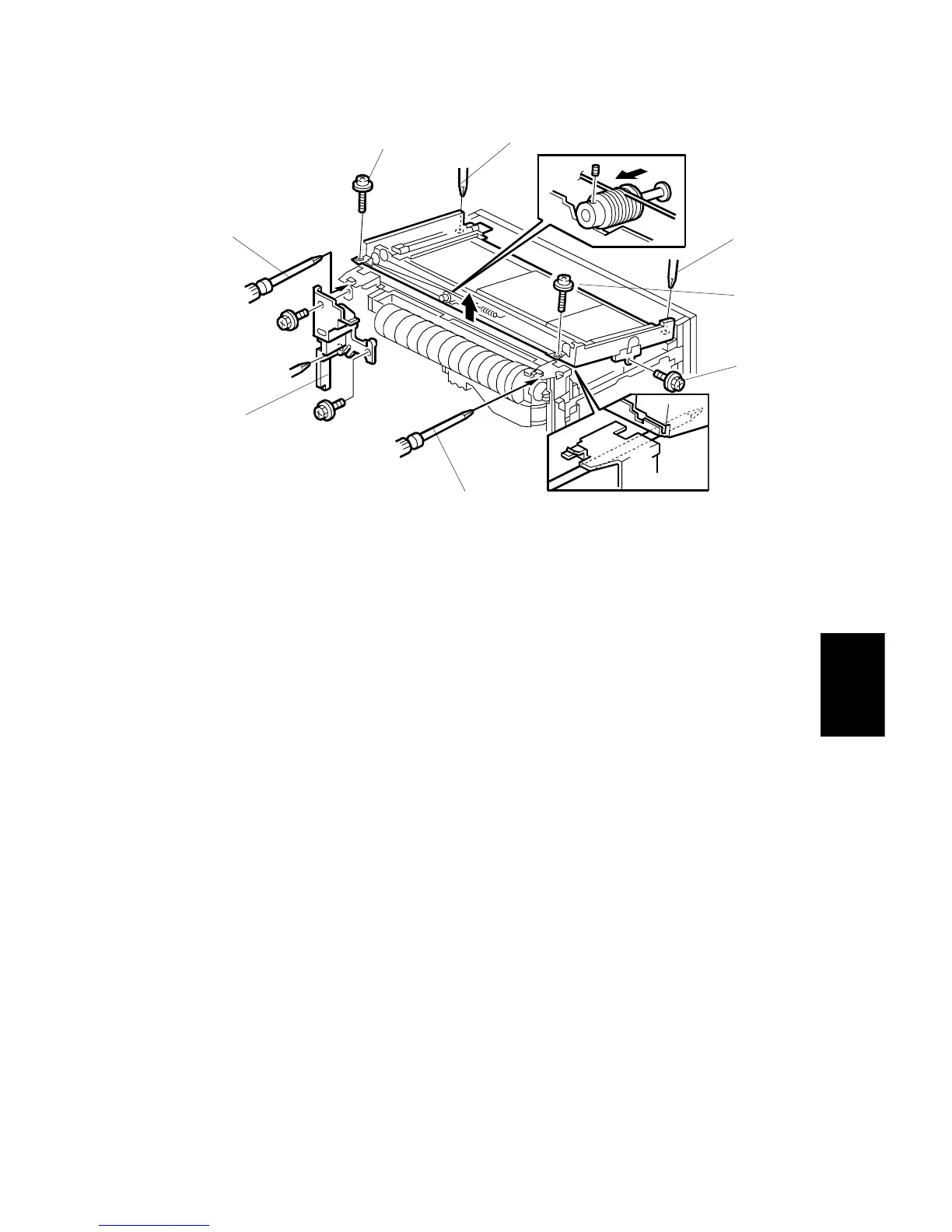 22. Gently lift up the scanner unit from the front side until the front pulley is