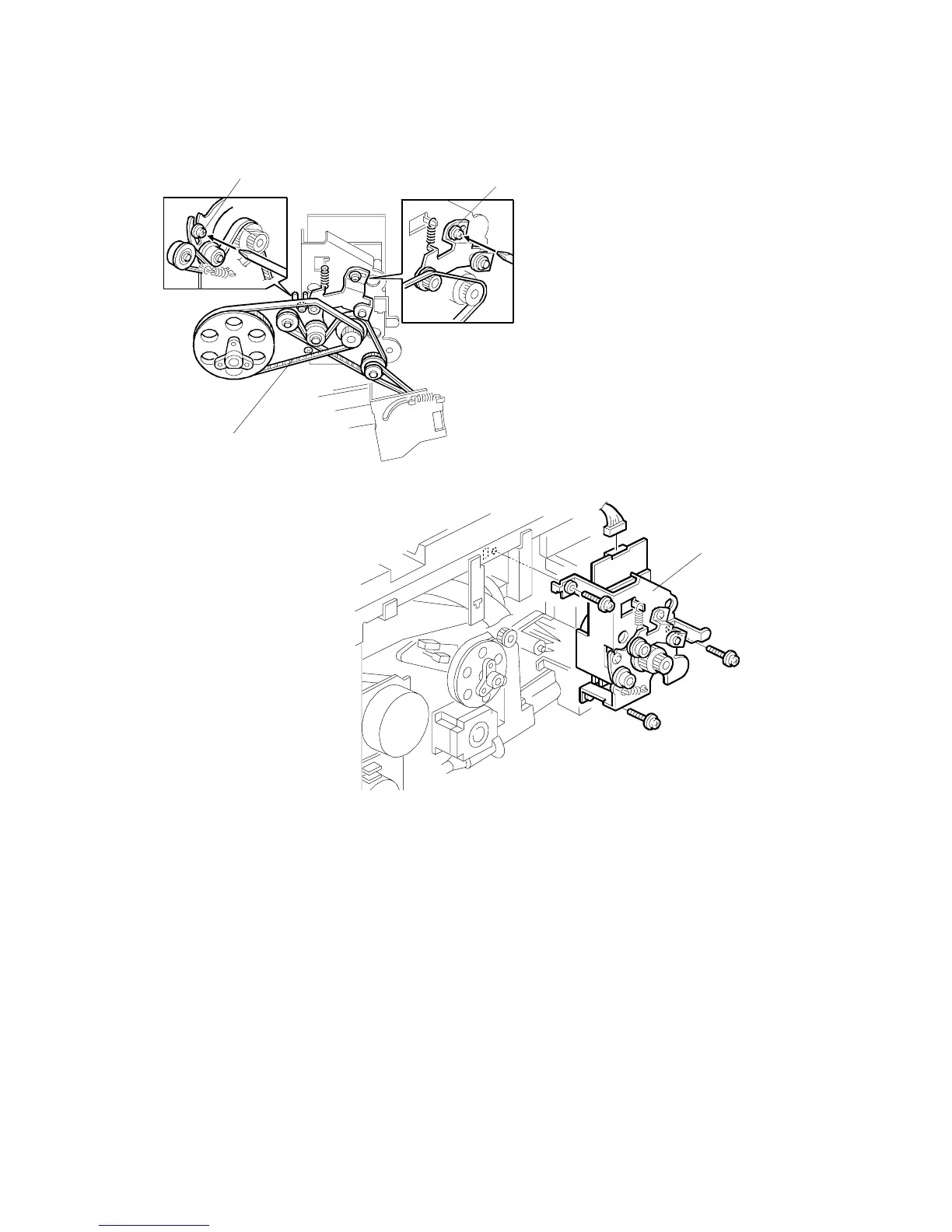 4. Remove the timing belts [B] from the drum motor’s pulleys.
