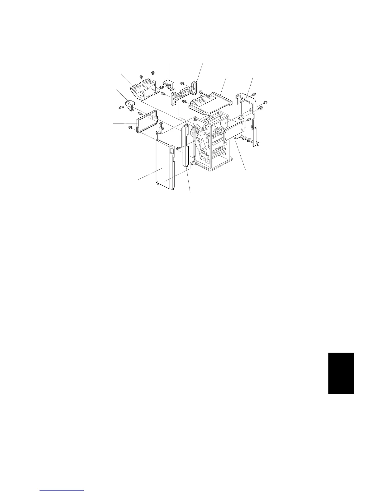 6. Remove the lower left cover [G] (4 screws).