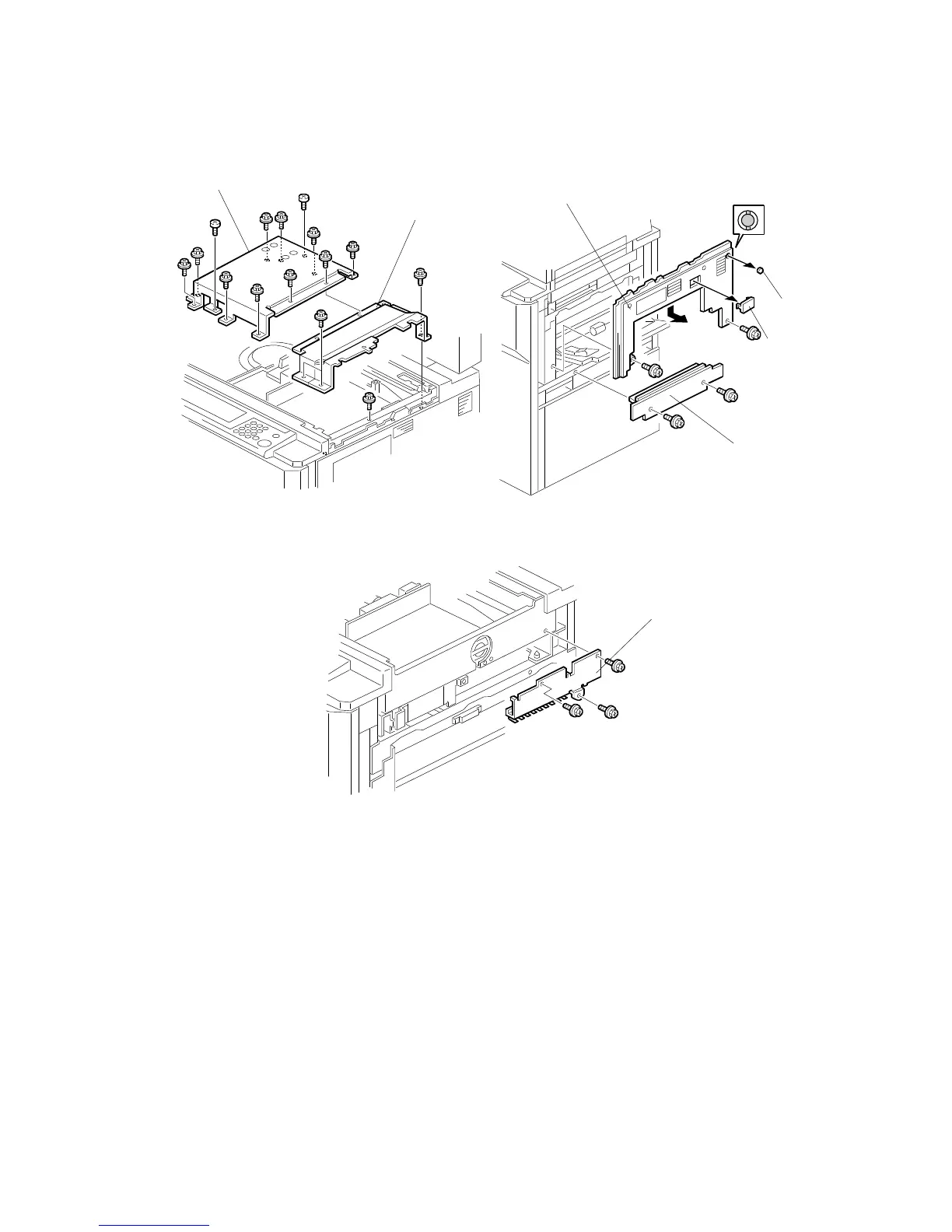 10. Remove the paper feed cover [C] (2 screws).